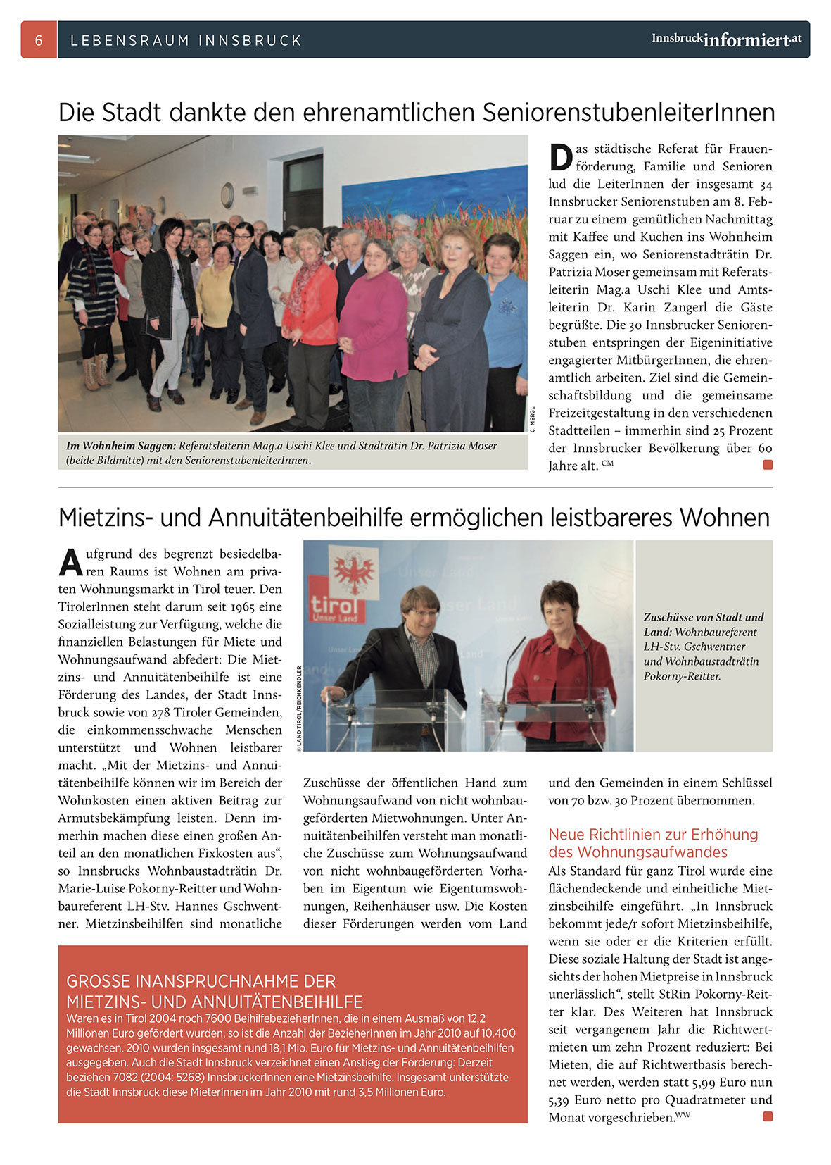 die Stadt Innsbruck diese MieterInnen im Jahr 2010 mit rund 3,5 Millionen euro.