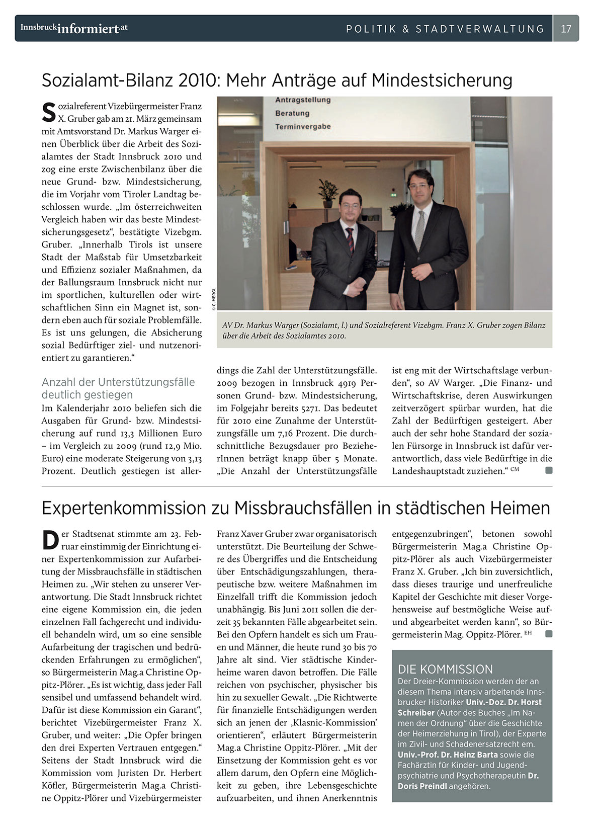 mit Amtsvorstand Dr. Markus Warger einen Überblick über die Arbeit des Sozialamtes der Stadt Innsbruck 2010 und