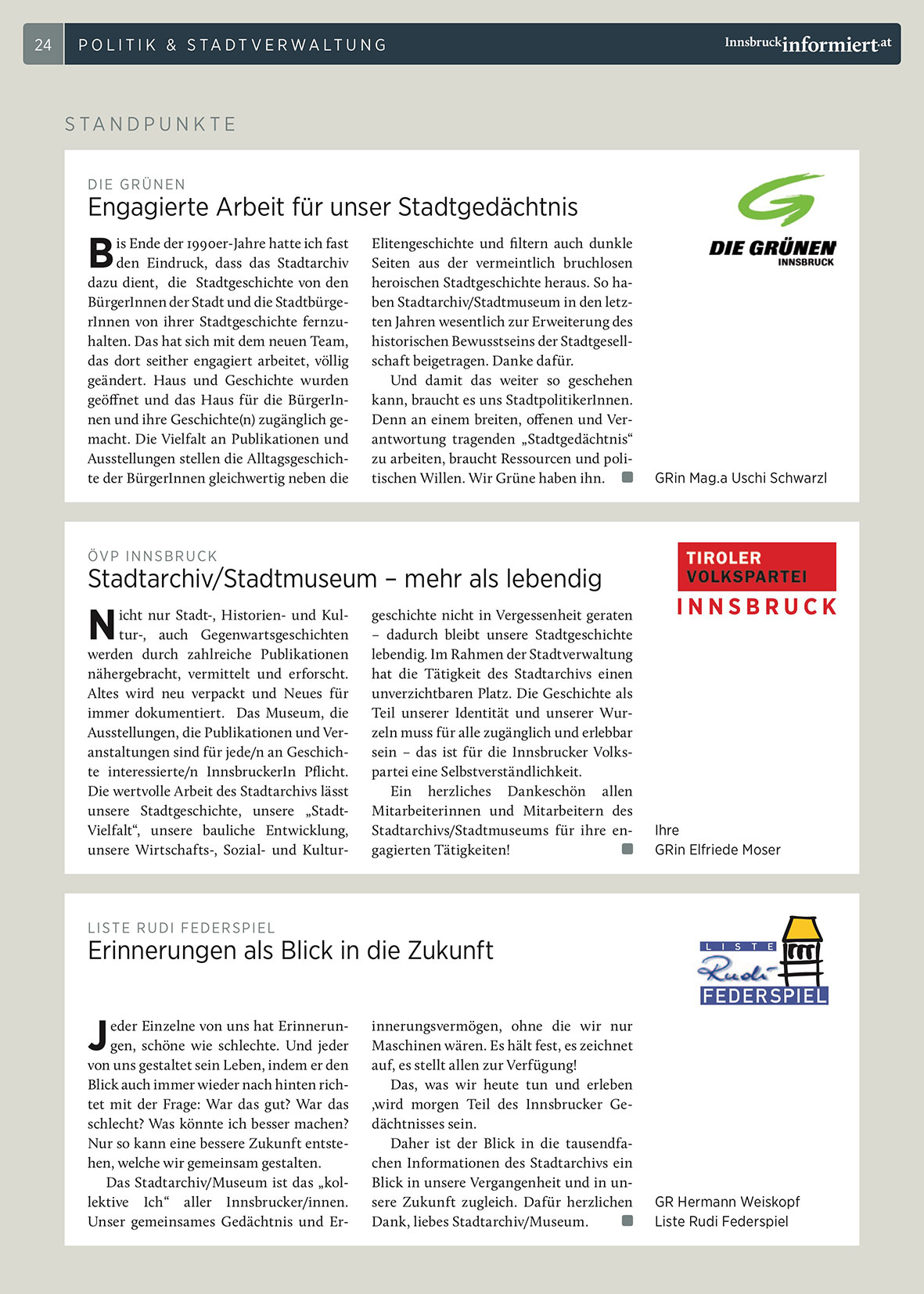 Ausstellungen, die Publikationen und Veranstaltungen sind für jede/n an Geschichte interessierte/n InnsbruckerIn Pflicht.