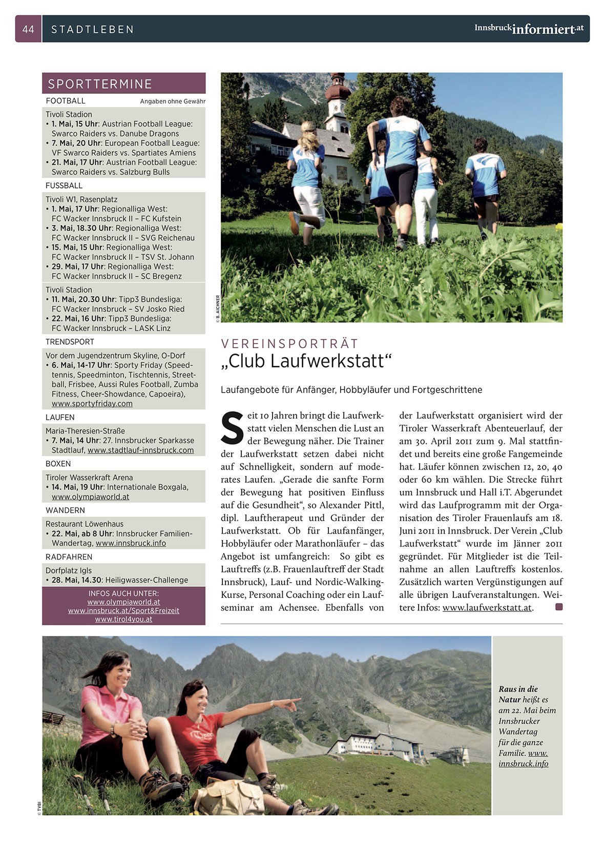 • 22. Mai, ab 8 Uhr: Innsbrucker FamilienWandertag, www.innsbruck.info