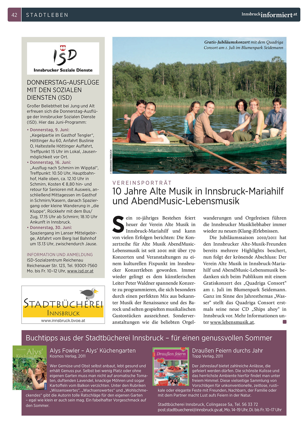 Innsbruck vor. Mehr Informationen unter www.lebensmusik.at.