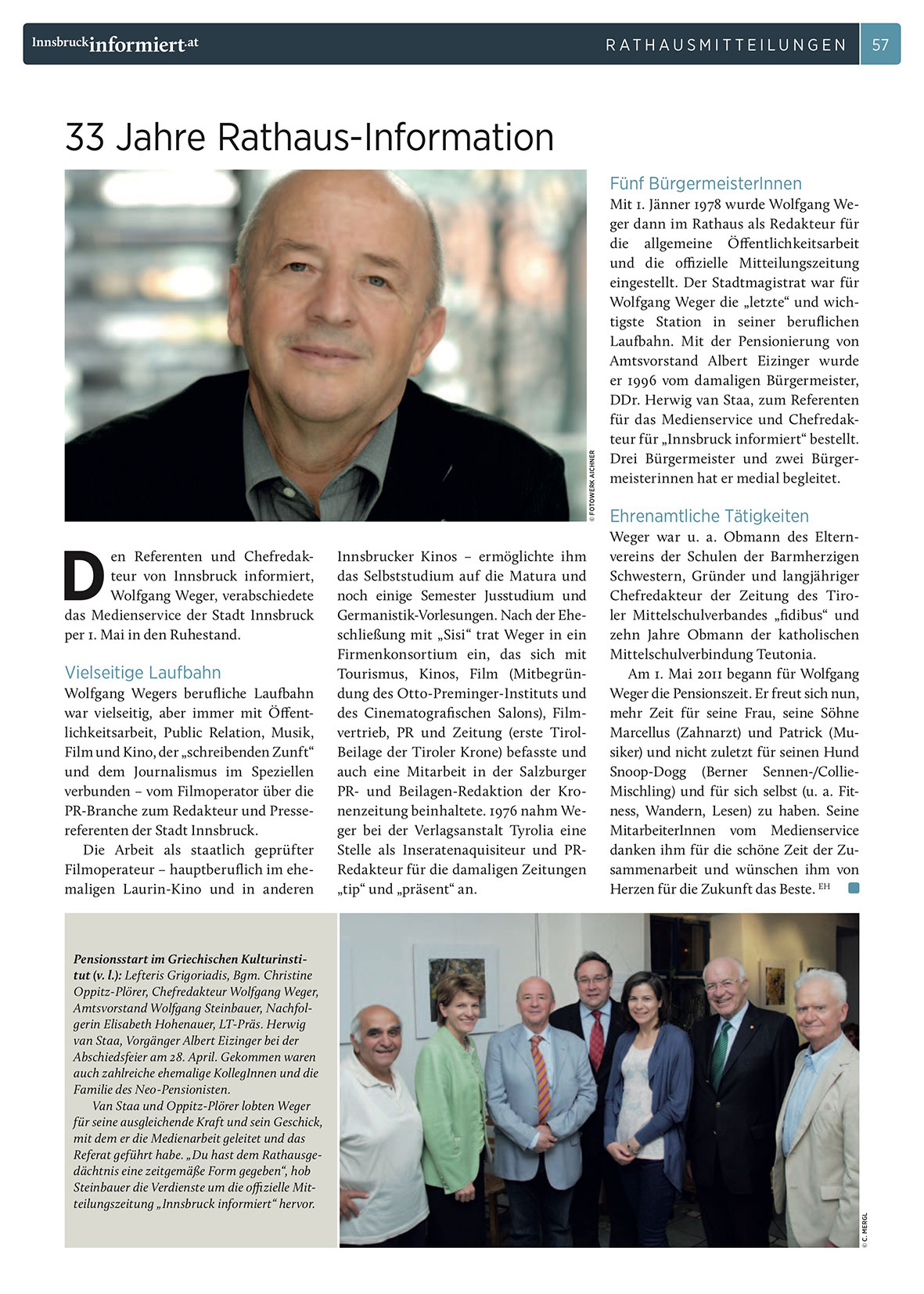 Steinbauer die Verdienste um die offizielle Mitteilungszeitung „Innsbruck informiert“ hervor.