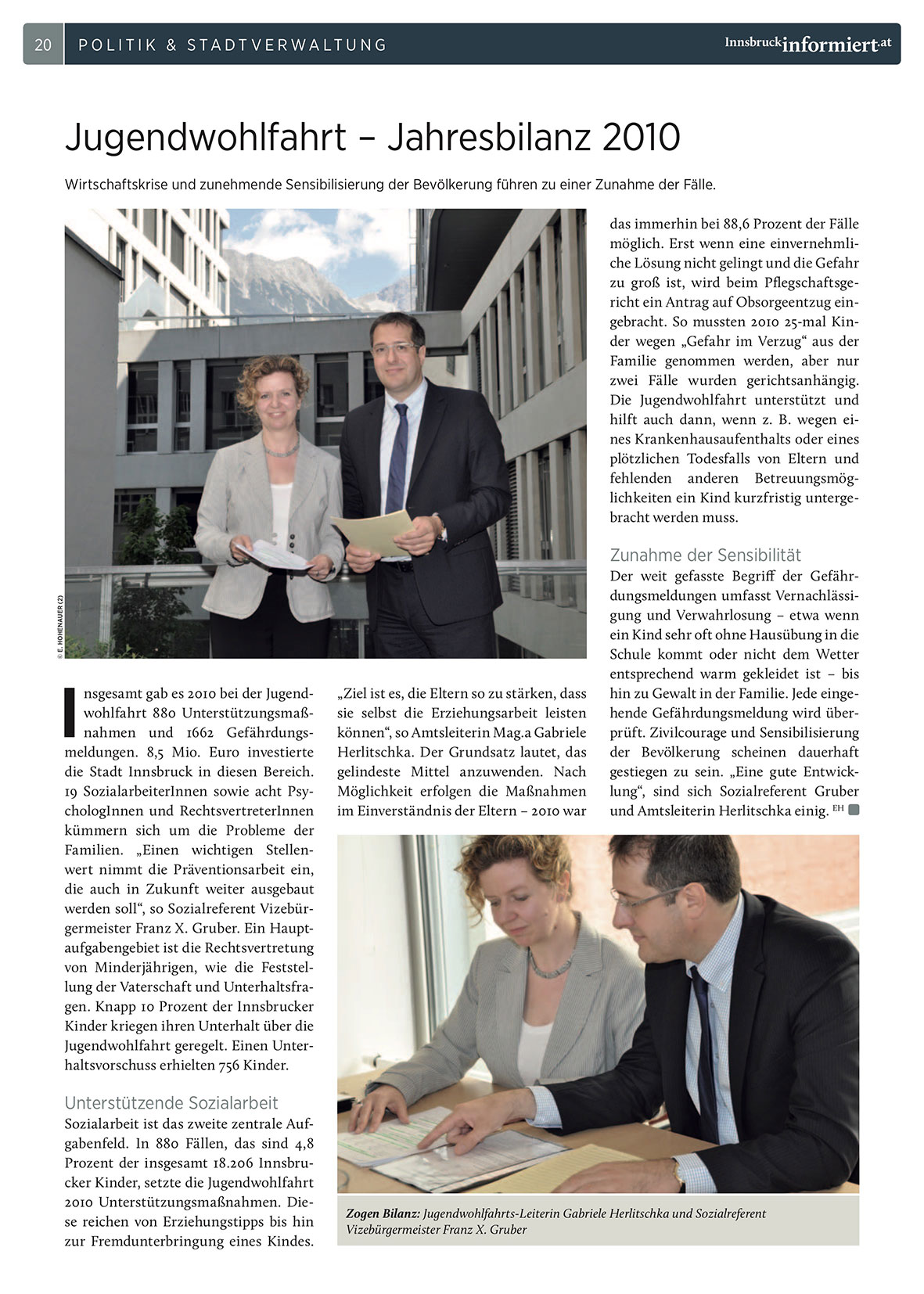 nsgesamt gab es 2010 bei der Jugendwohlfahrt 880 Unterstützungsmaßnahmen und 1662 Gefährdungsmeldungen. 8,5 Mio. Euro investierte