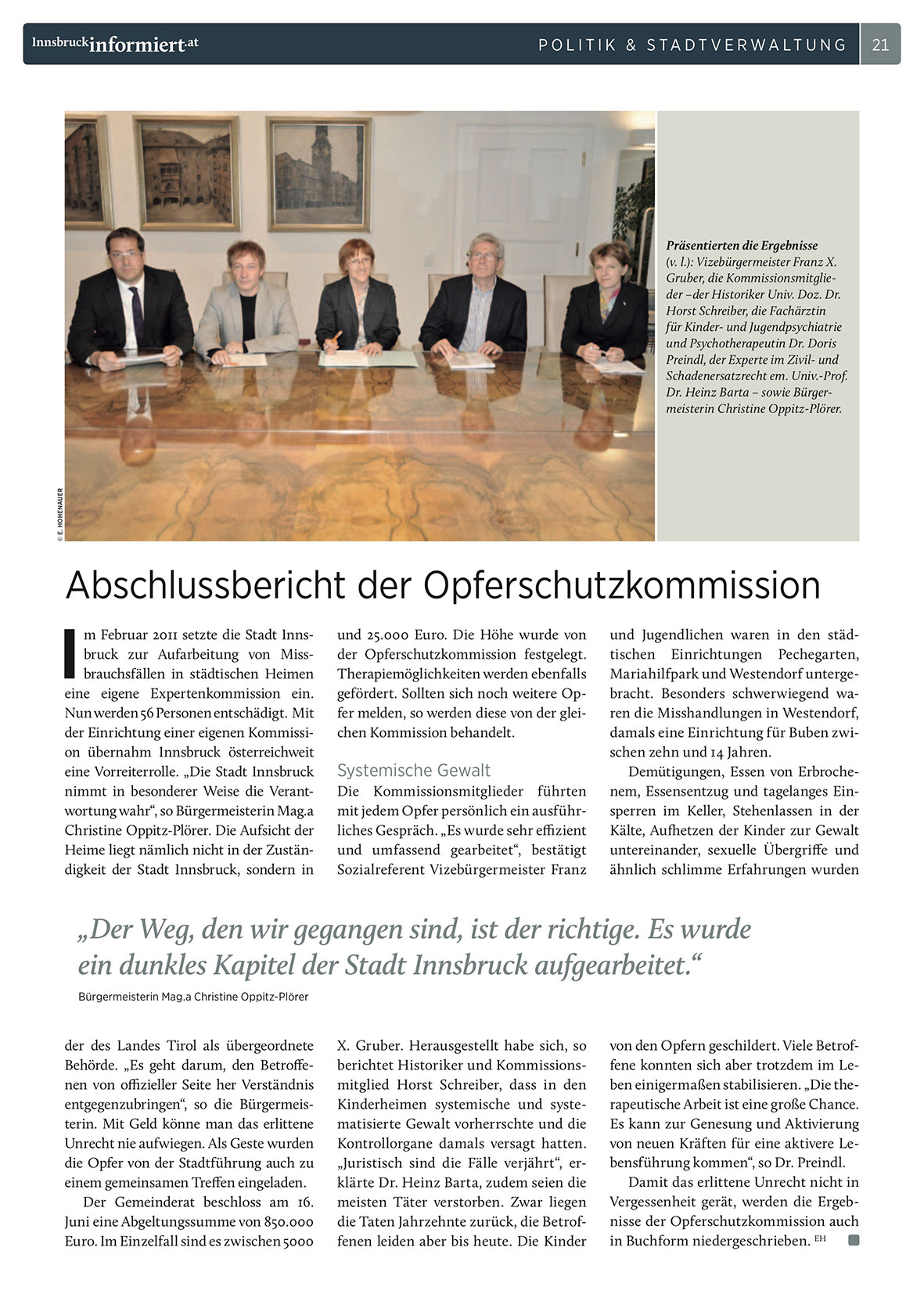 m Februar 2011 setzte die Stadt Innsbruck zur Aufarbeitung von Missbrauchsfällen in städtischen Heimen