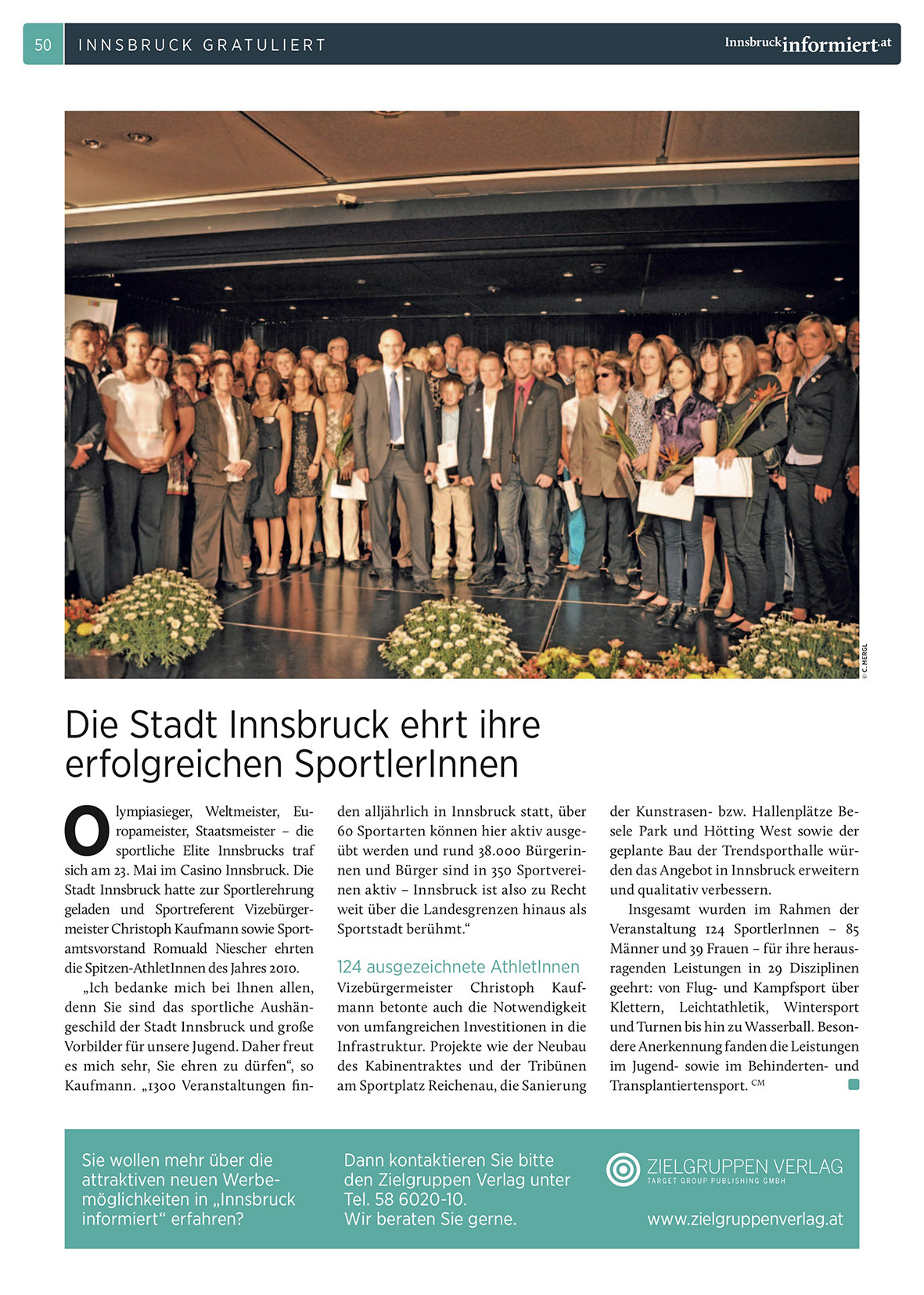 denn Sie sind das sportliche Aushängeschild der Stadt Innsbruck und große