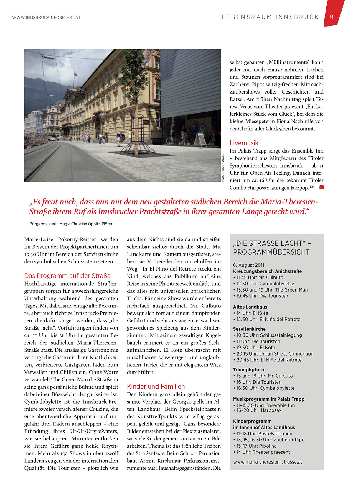 „Es freut mich, dass nun mit dem neu gestalteten südlichen Bereich die Maria-TheresienStraße ihrem Ruf als Innsbrucker Prachtstraße in ihrer gesamten Länge gerecht wird.“
