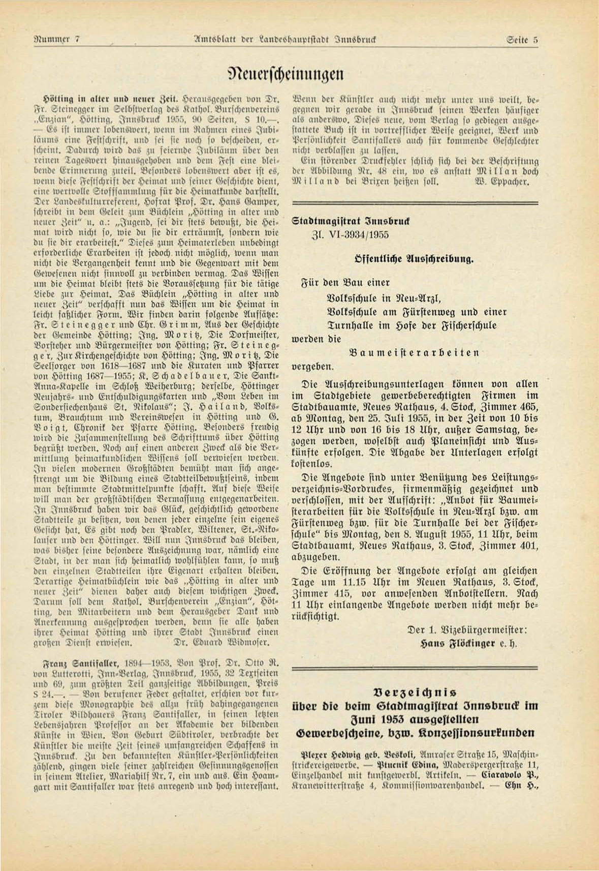 Vorsteher und Bürgermeister von Hötting; F r . S t e i n e gg e r, ZnrKirchcngcschichtc von Hotting; I n g . M o r i t z , Die