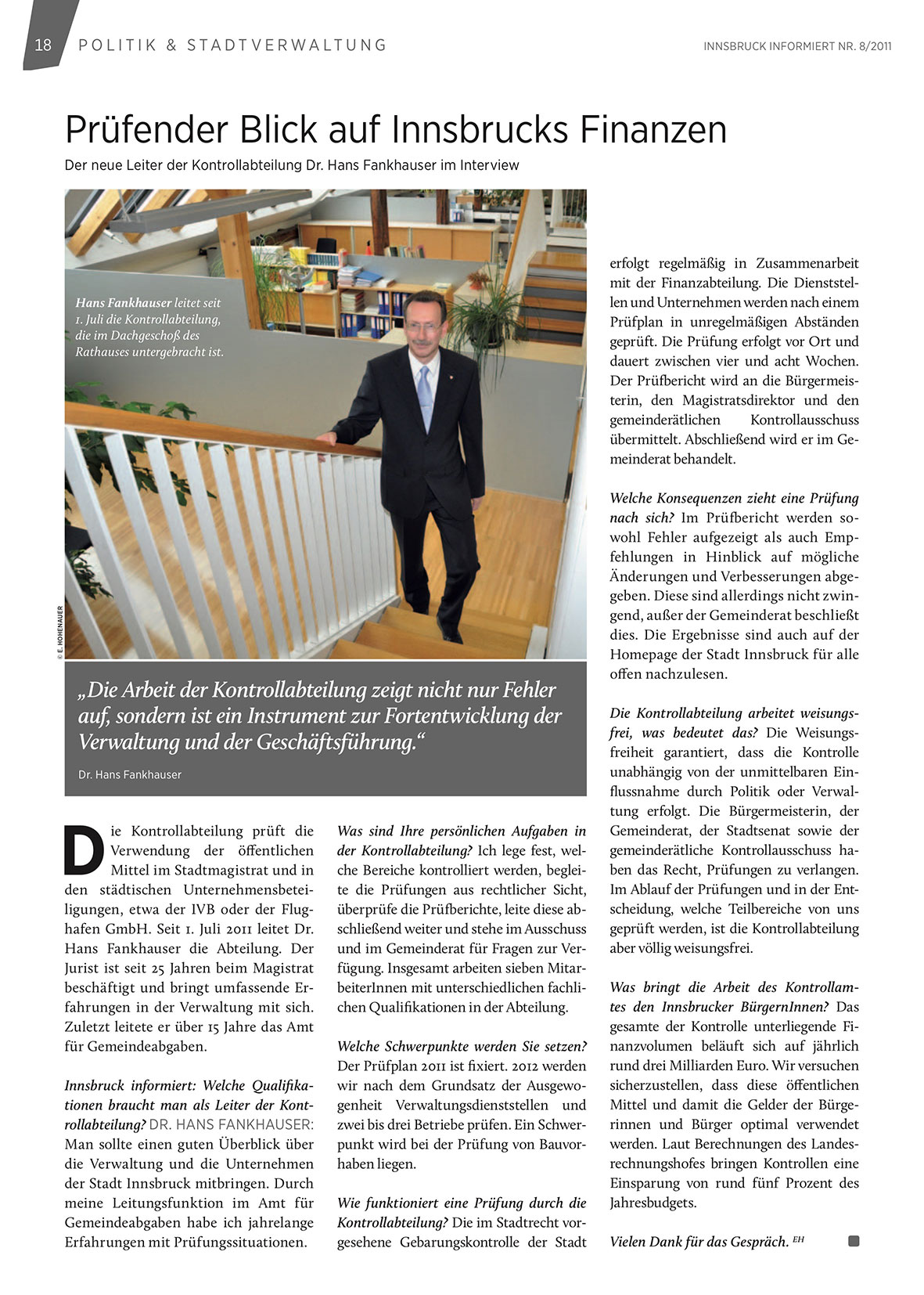 Innsbruck informiert: Welche Qualifikationen braucht man als Leiter der Kontrollabteilung? Dr. Hans Fankhauser: