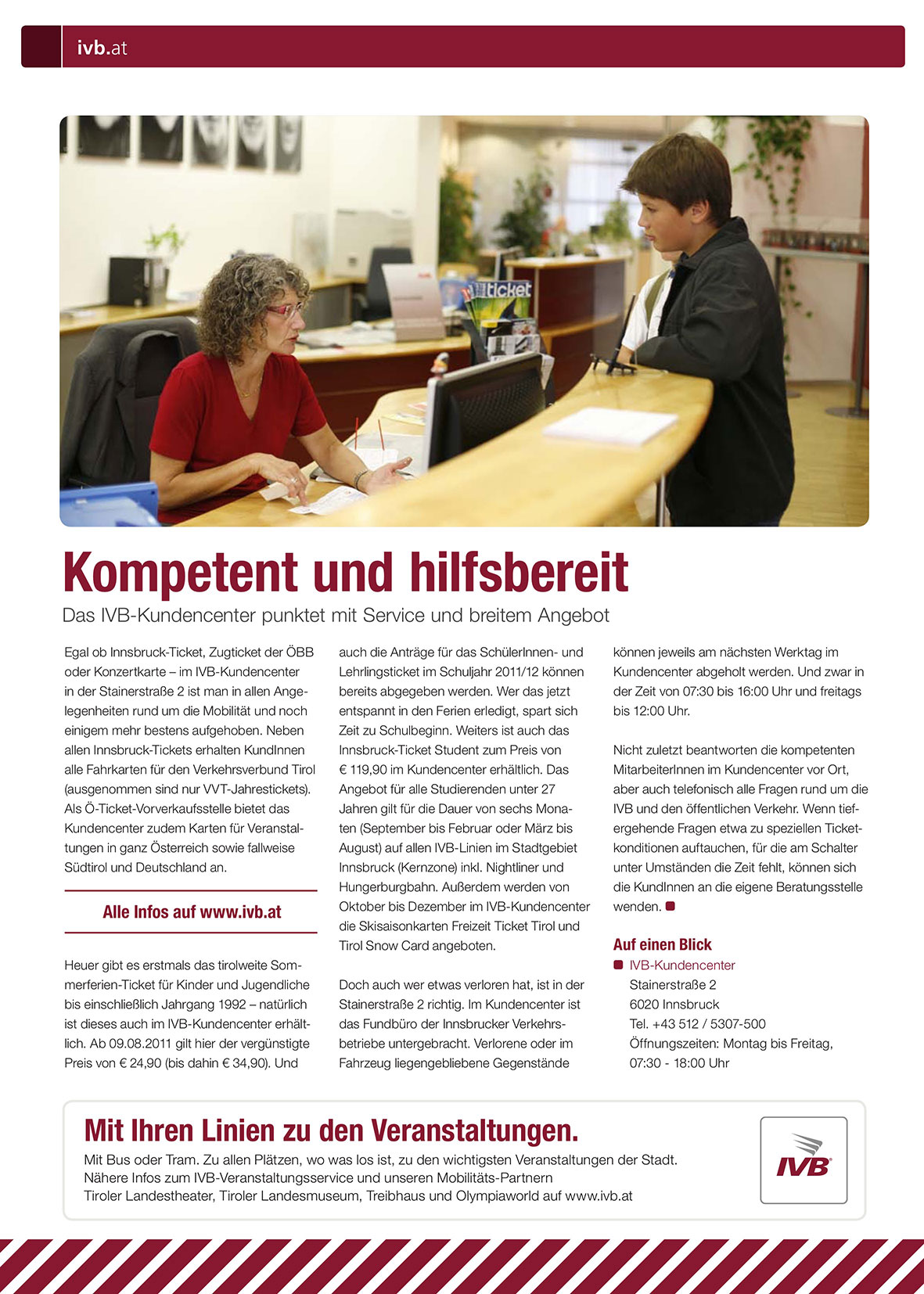 IVB und den öffentlichen Verkehr. Wenn tiefergehende Fragen etwa zu speziellen Ticketkonditionen auftauchen, für die am Schalter