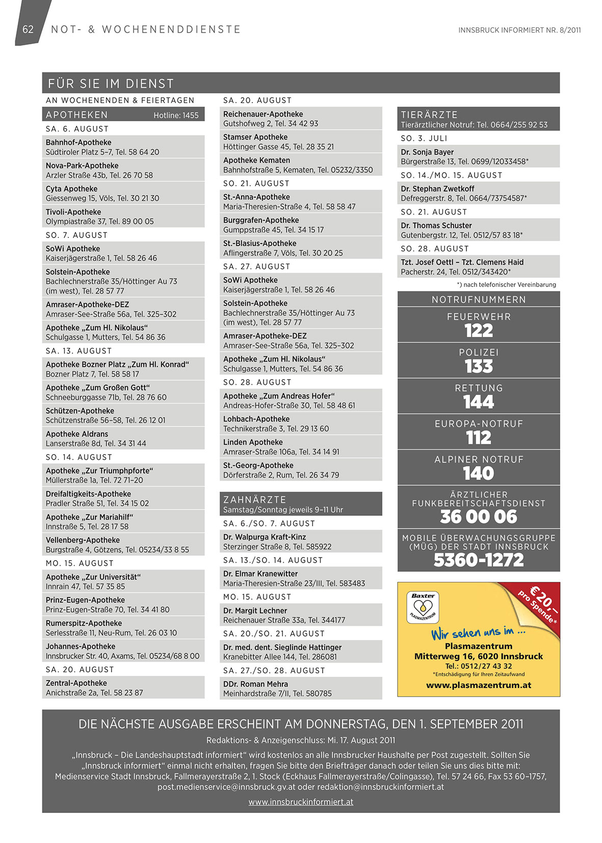 „Innsbruck informiert“ einmal nicht erhalten, fragen sie bitte den Briefträger danach oder teilen sie uns dies bitte mit:
