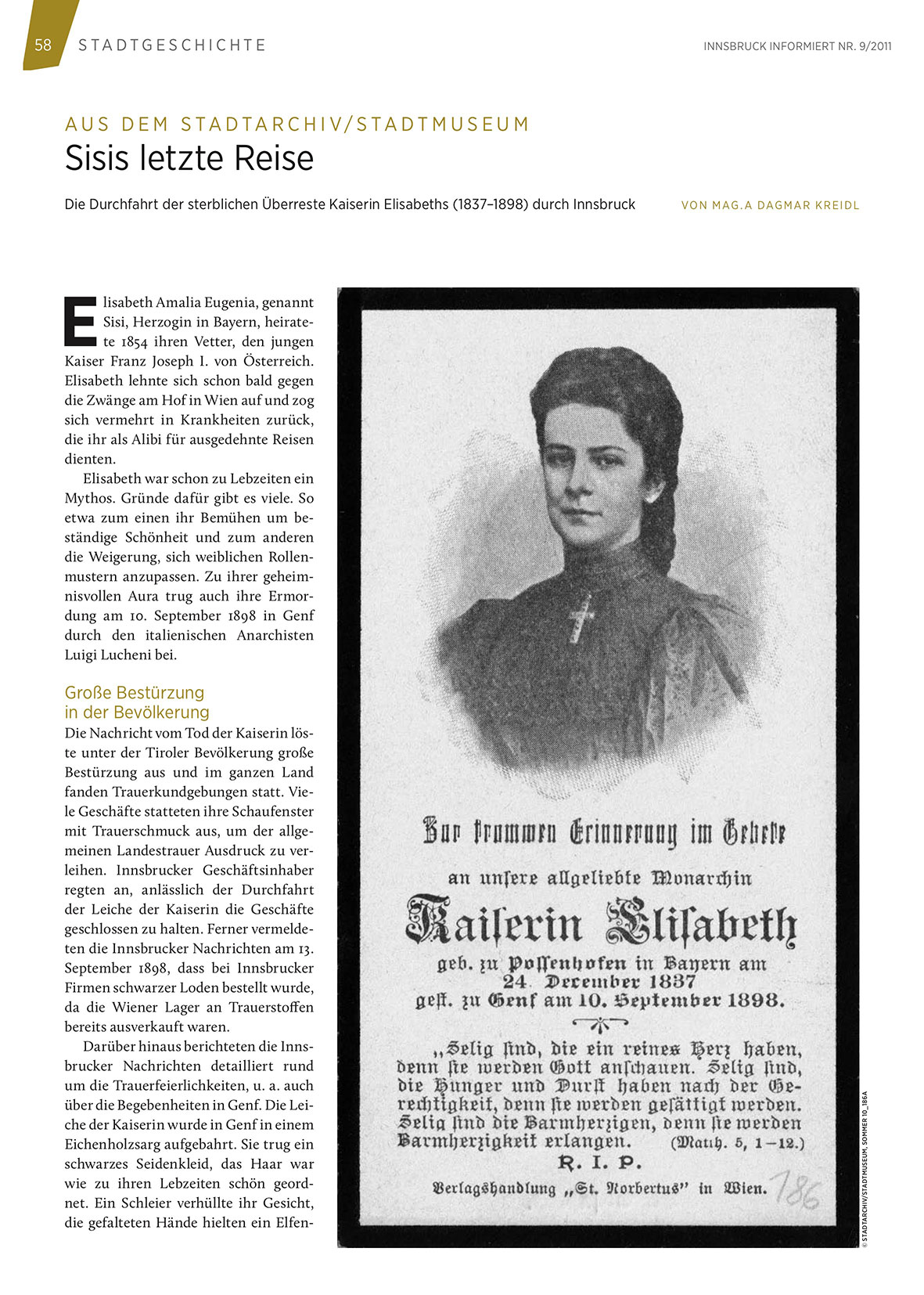 Die Nachricht vom Tod der Kaiserin löste unter der Tiroler Bevölkerung große