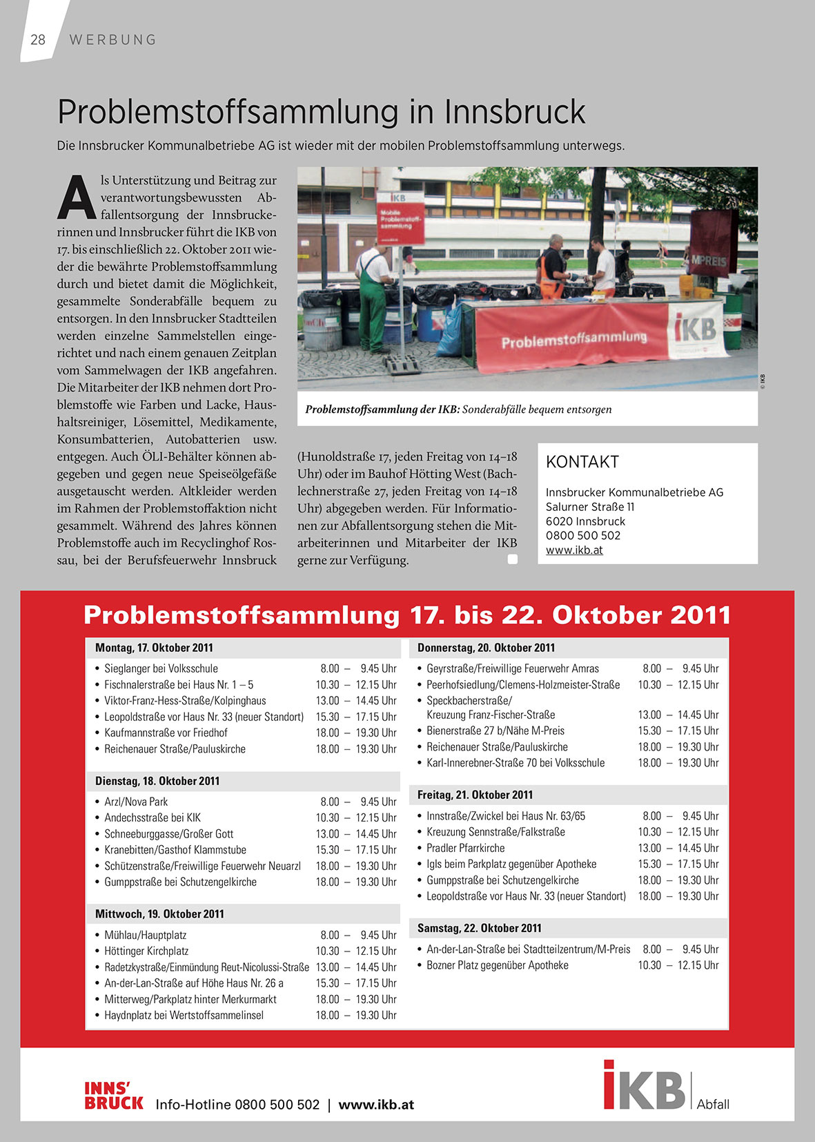 verantwortungsbewussten Abfallentsorgung der Innsbruckerinnen und Innsbrucker führt die IKB von