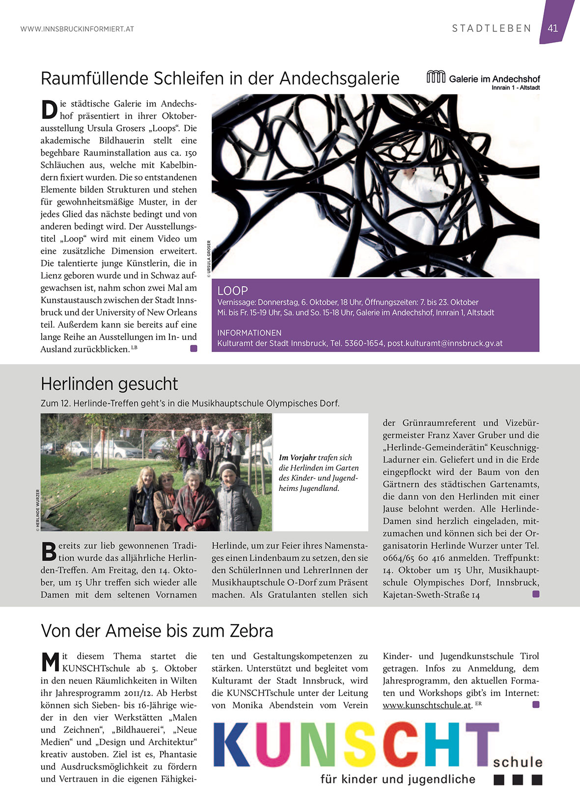 Kulturamt der Stadt Innsbruck, Tel. 5360-1654, post.kulturamt@innsbruck.gv.at