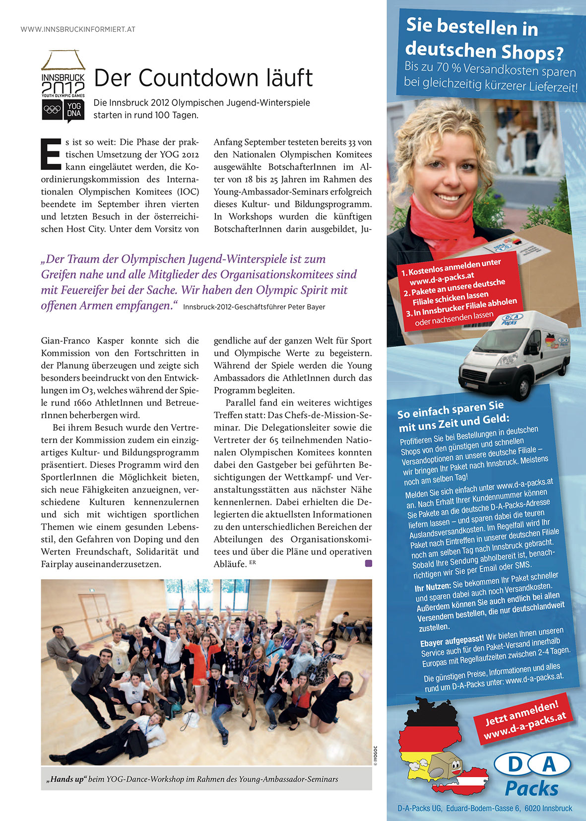 offenen Armen empfangen.“ Innsbruck-2012-Geschäftsführer Peter Bayer