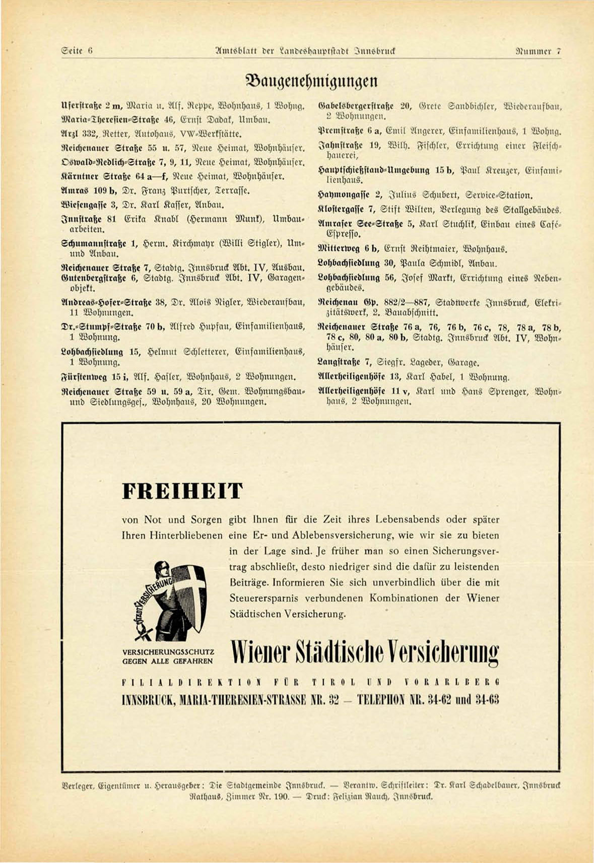 Verleger, Eigentinurr u, Herausgeber: Tie Stlidtqemcindc Innsbruck. — Pcrantw. Schriftleiter: ? r . Karl Echadrllnnirr.