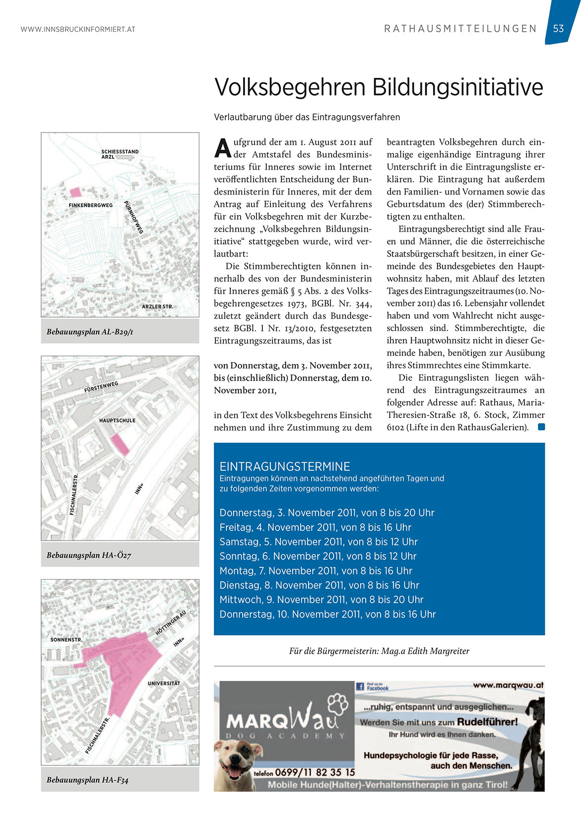 Für die Bürgermeisterin: Mag.a Edith Margreiter
