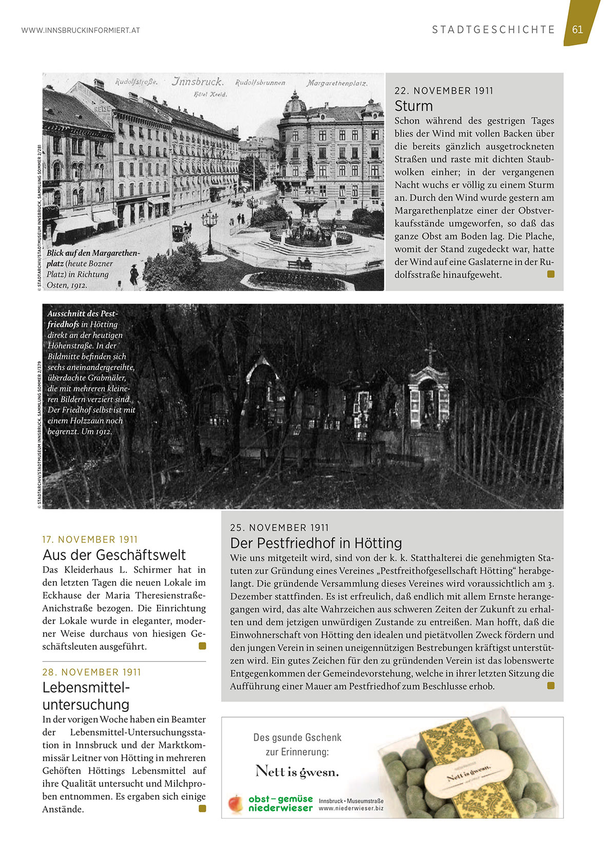 Lebensmittel-Untersuchungsstation in Innsbruck und der Marktkommissär Leitner von Hötting in mehreren