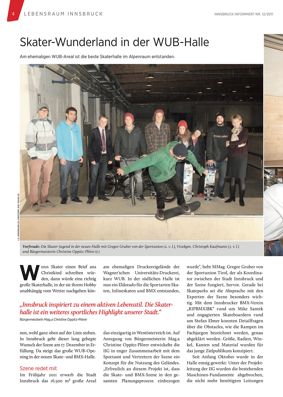 „Innsbruck inspiriert zu einem aktiven Lebensstil. Die Skaterhalle ist ein weiteres sportliches Highlight unserer Stadt.“