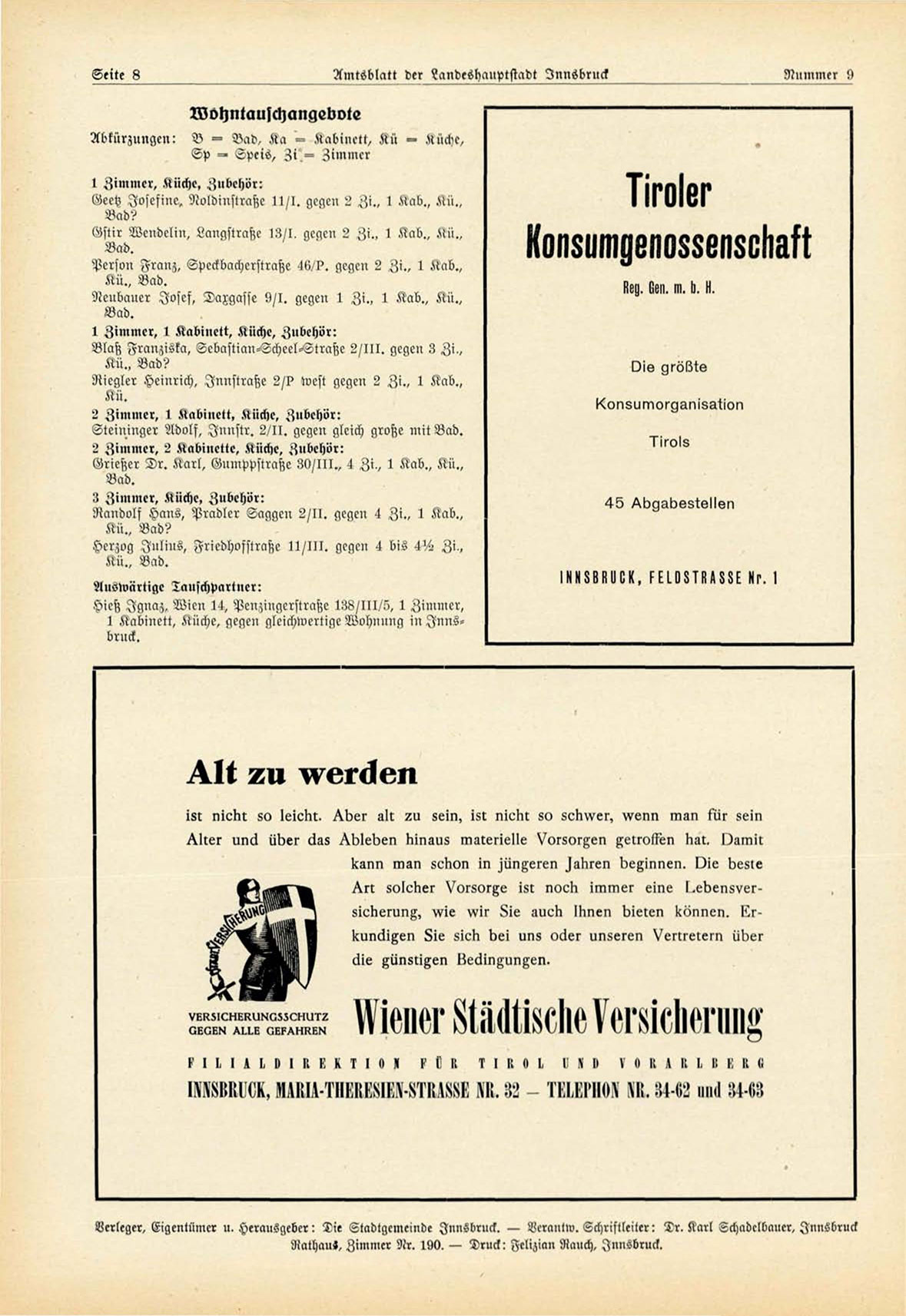 Verleger, Eigentümer «.Herausgeber: Tie Stadtgcmcinde Innsbruck. — Prrautw. Schriftleiter: Tr. Karl Schadclbaucr, Iun^brucl