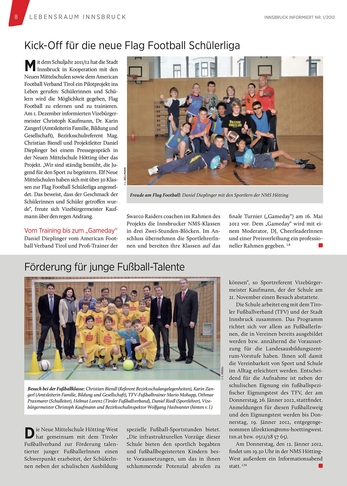 Die Schule arbeitet eng mit dem Tiroler Fußballverband (TFV) und der Stadt