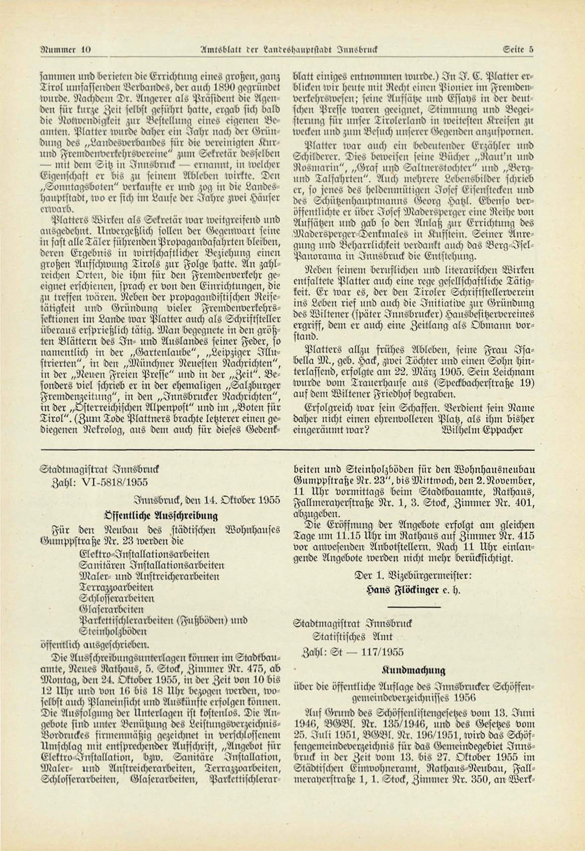 25. J u l i 1951, BWBl. Nr. 190/1951, wird das Schöffengemeindeverzeichnis fiir das Gcmeindegebiet I n n s bruck in der Zeit vom 13. bis 27. Oktober 1955 im