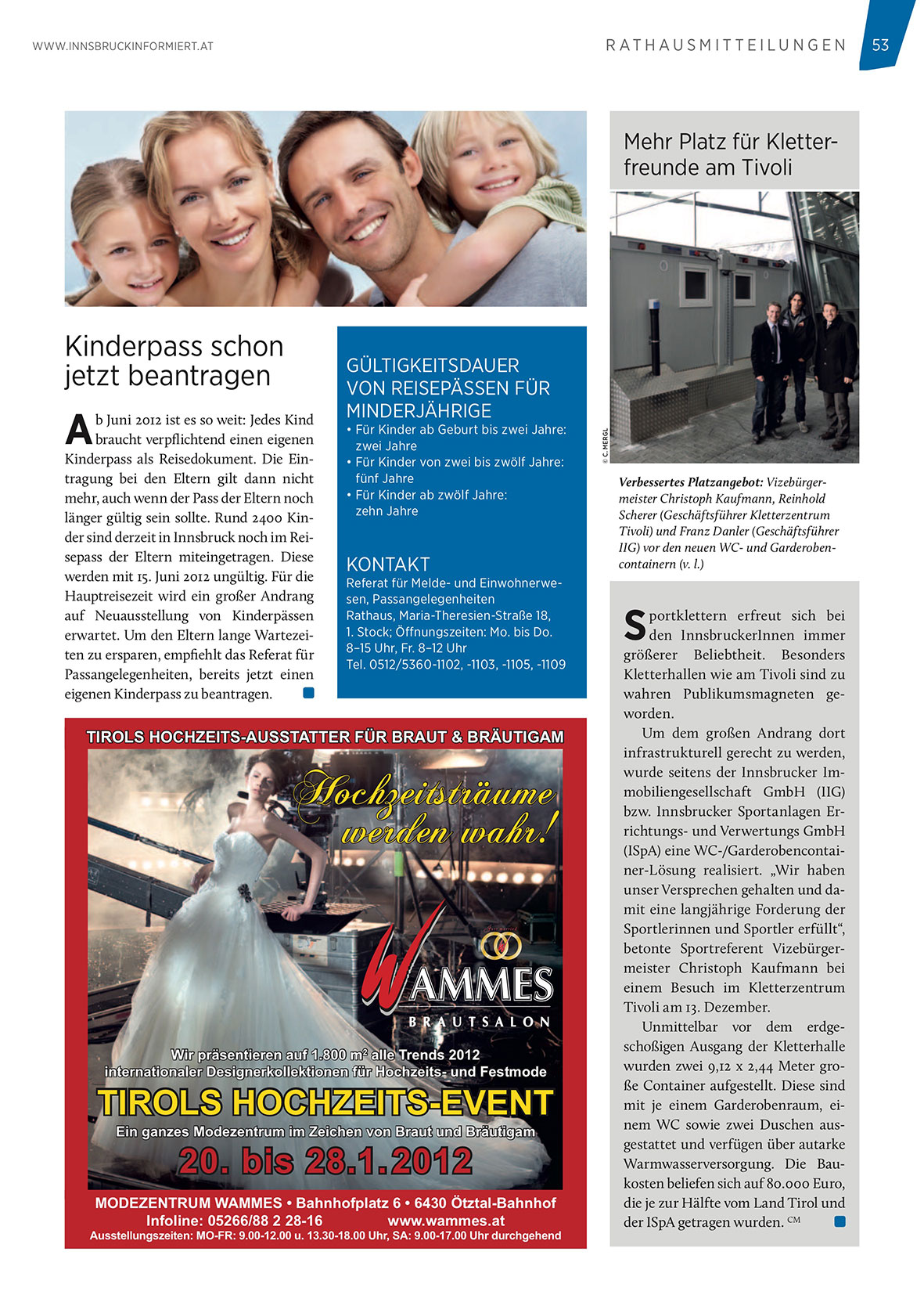 länger gültig sein sollte. Rund 2400 Kinder sind derzeit in Innsbruck noch im Reisepass der Eltern miteingetragen. Diese