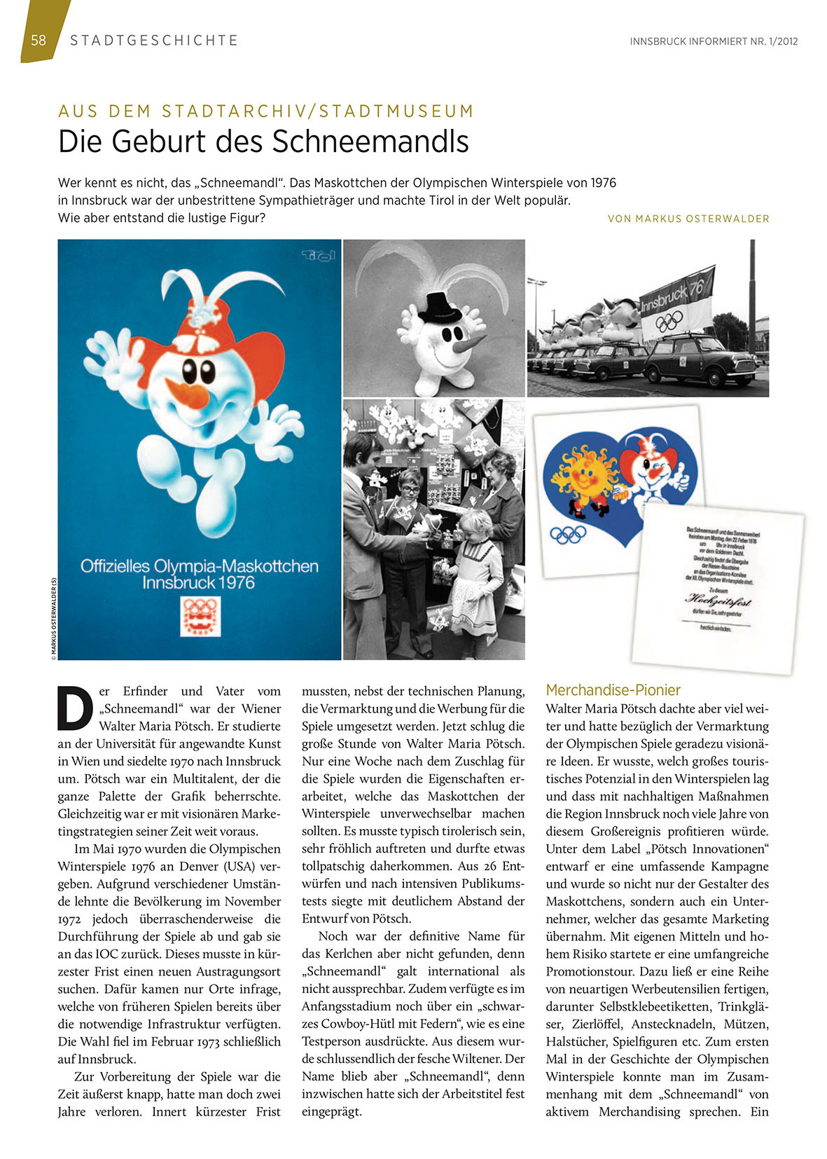 Wer kennt es nicht, das „Schneemandl“. Das Maskottchen der Olympischen Winterspiele von 1976