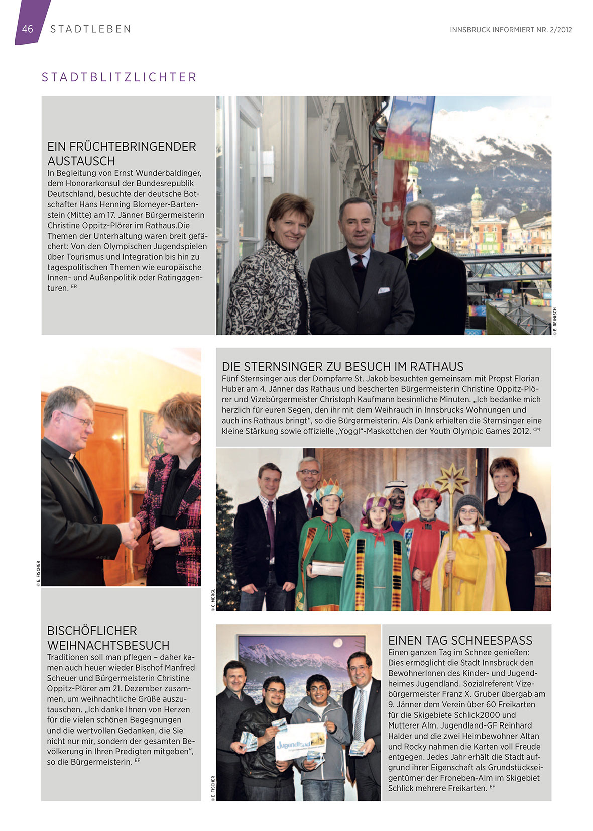 Huber am 4. Jänner das Rathaus und bescherten Bürgermeisterin Christine Oppitz-Plörer und Vizebürgermeister Christoph Kaufmann besinnliche Minuten. „Ich bedanke mich