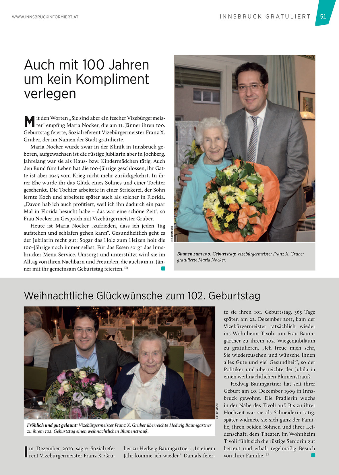 it den Worten „Sie sind aber ein fescher Vizebürgermeister“ empfing Maria Nocker, die am 11. Jänner ihren 100.
