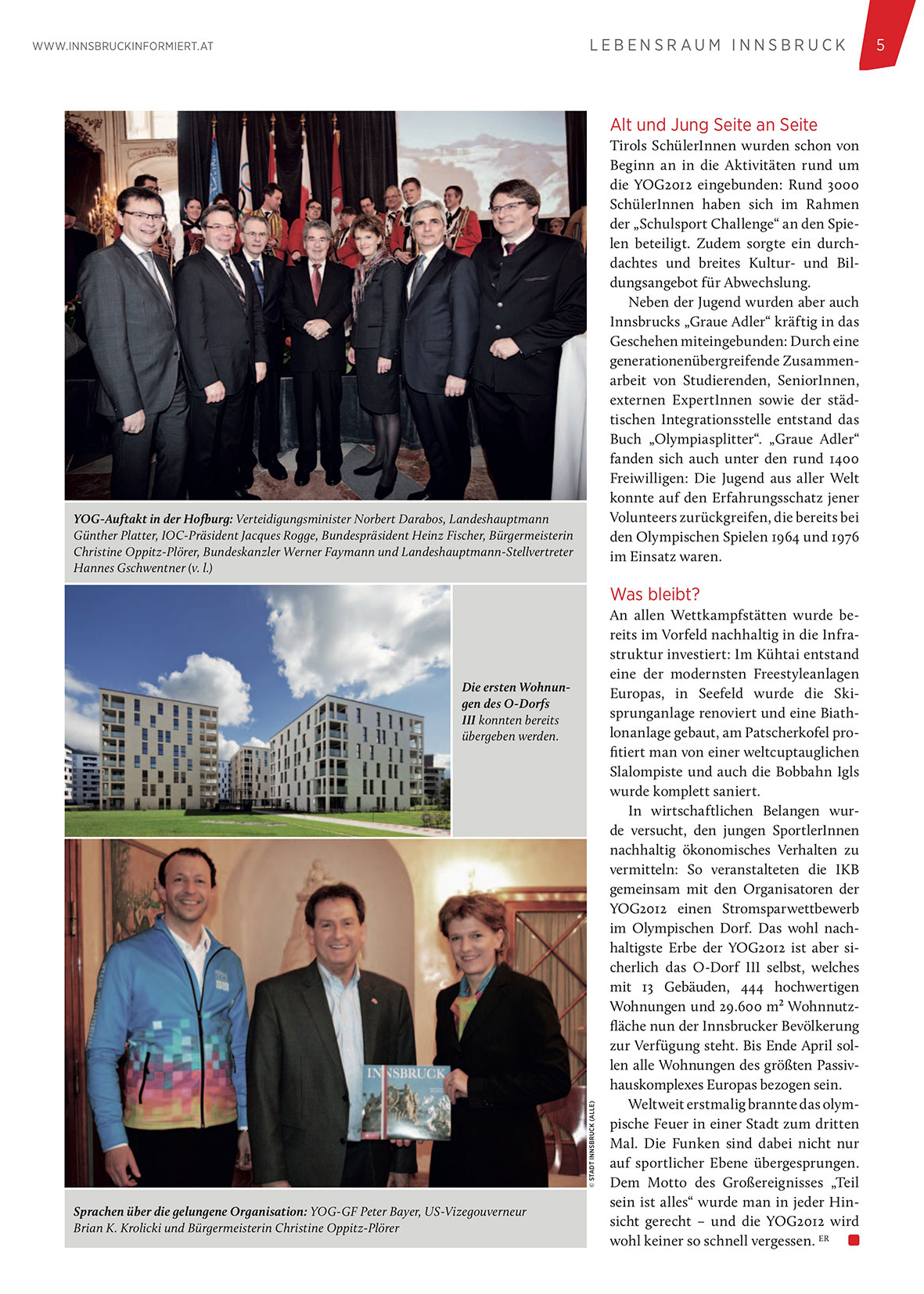 Günther Platter, IOC-Präsident Jacques Rogge, Bundespräsident Heinz Fischer, Bürgermeisterin