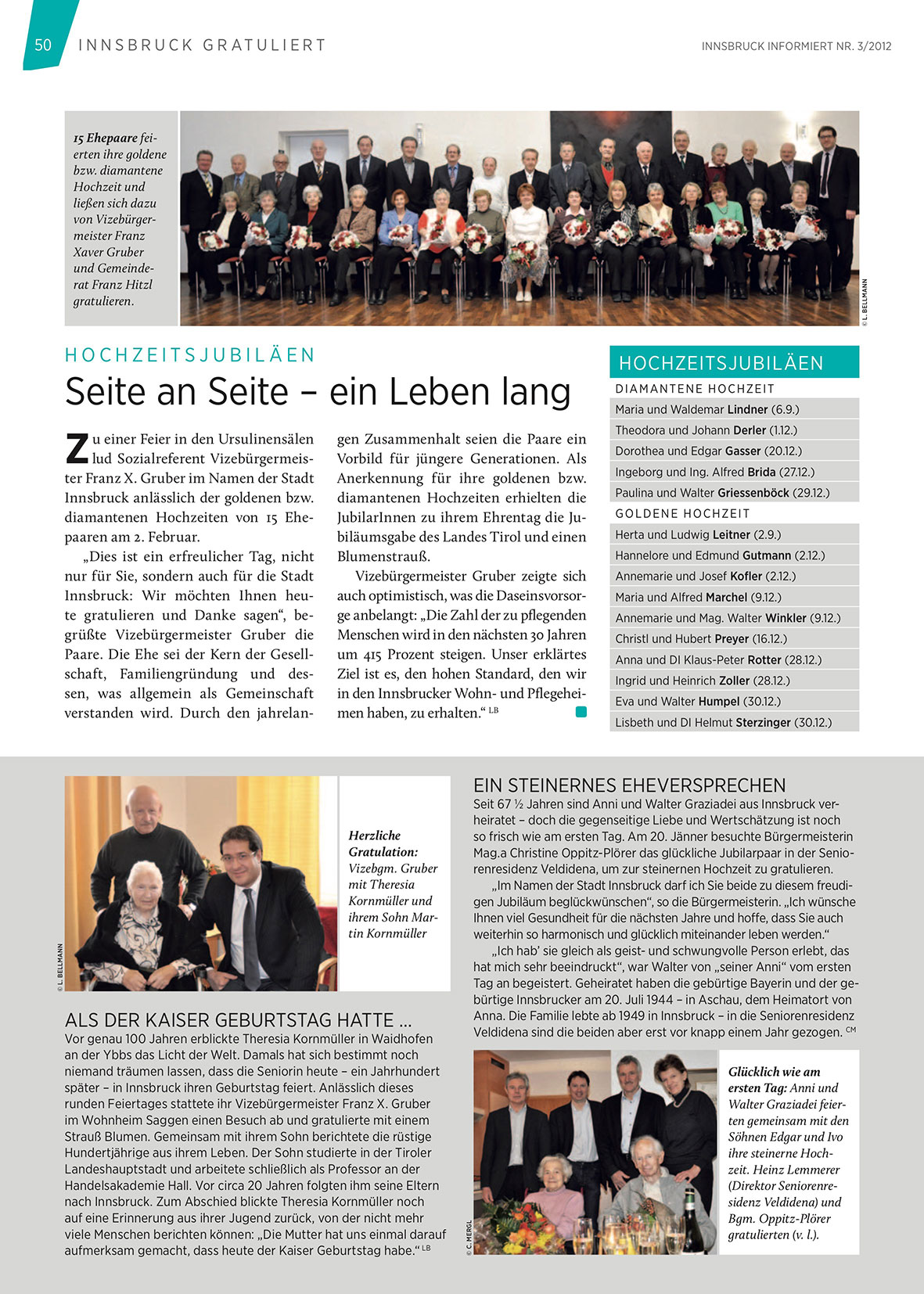 „Im Namen der Stadt Innsbruck darf ich Sie beide zu diesem freudigen Jubiläum beglückwünschen“, so die Bürgermeisterin. „Ich wünsche