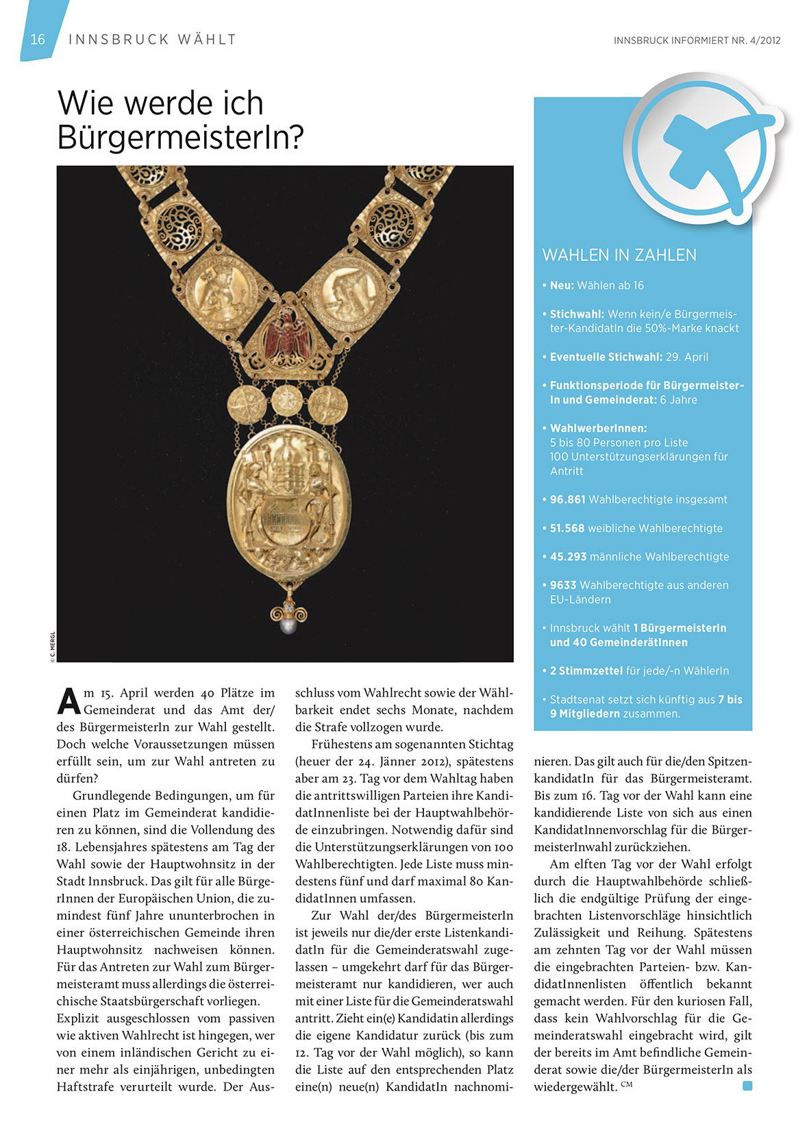 Stadt Innsbruck. Das gilt für alle BürgerInnen der Europäischen Union, die zumindest fünf Jahre ununterbrochen in