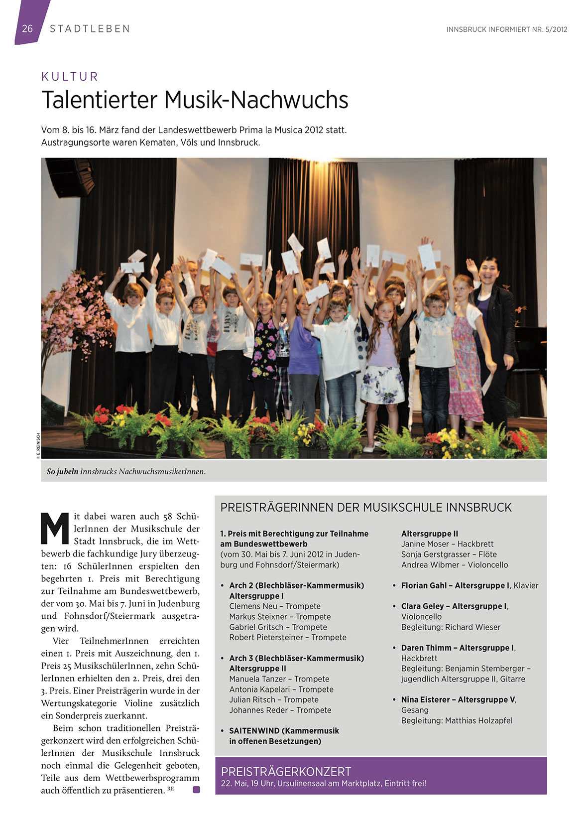 PREISTRÄGERINNEN DER MUSIKSCHULE INNSBRUCK