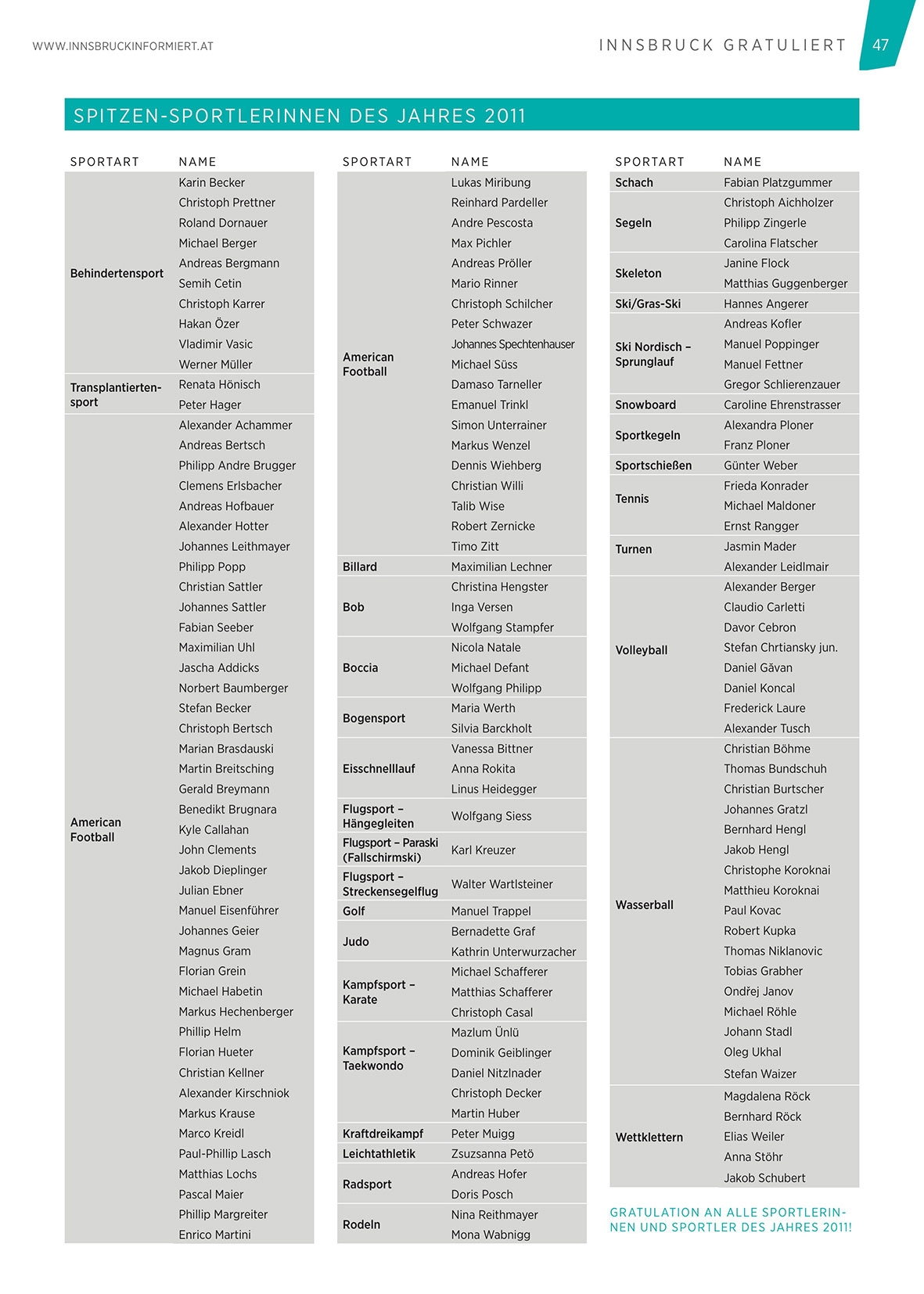 gr atul ation AN ALLE SPORTLERinnen und sportler DES JAHRES 2011!