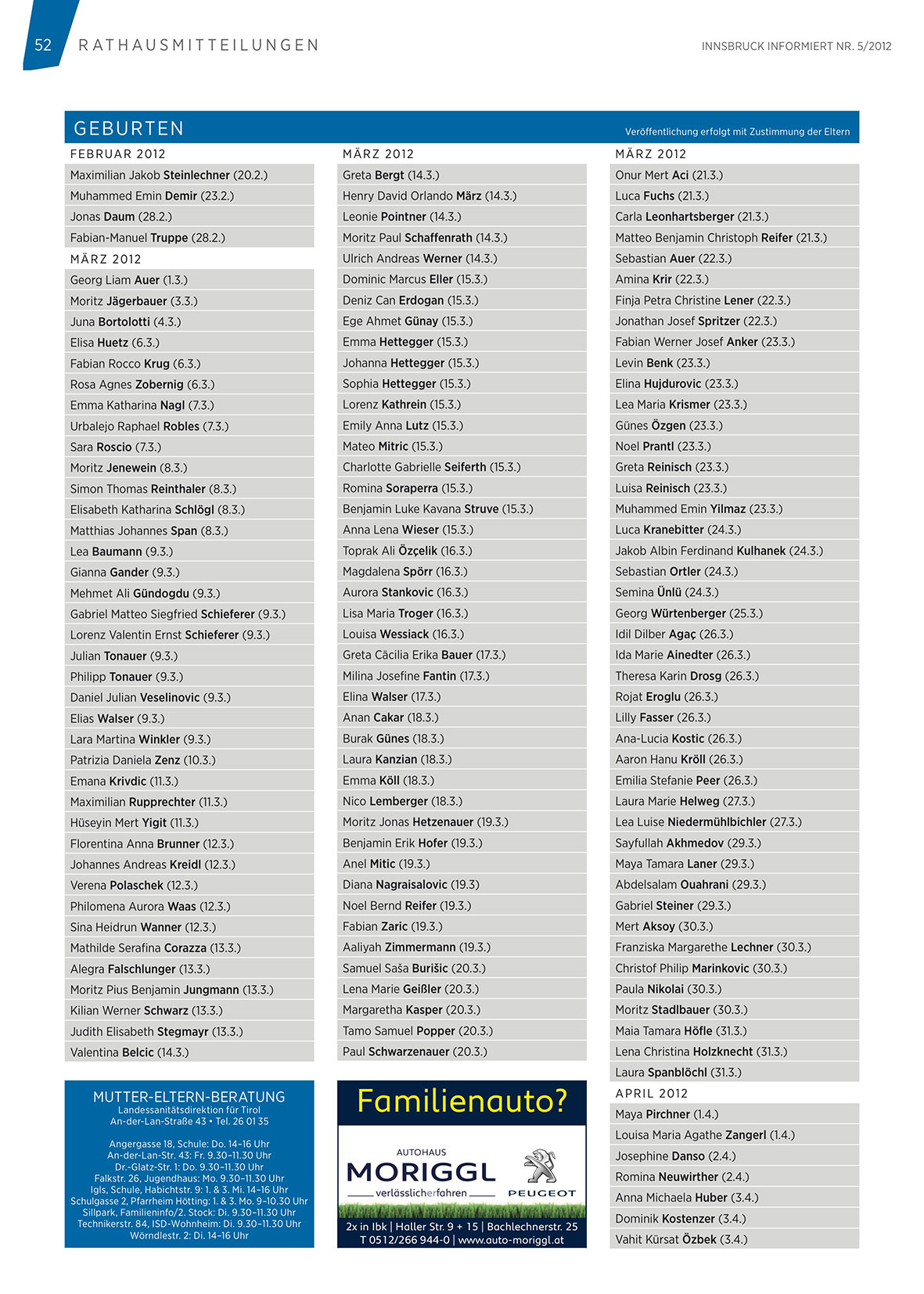 Schulgasse 2, Pfarrheim Hötting: 1. & 3. Mo. 9–10.30 Uhr