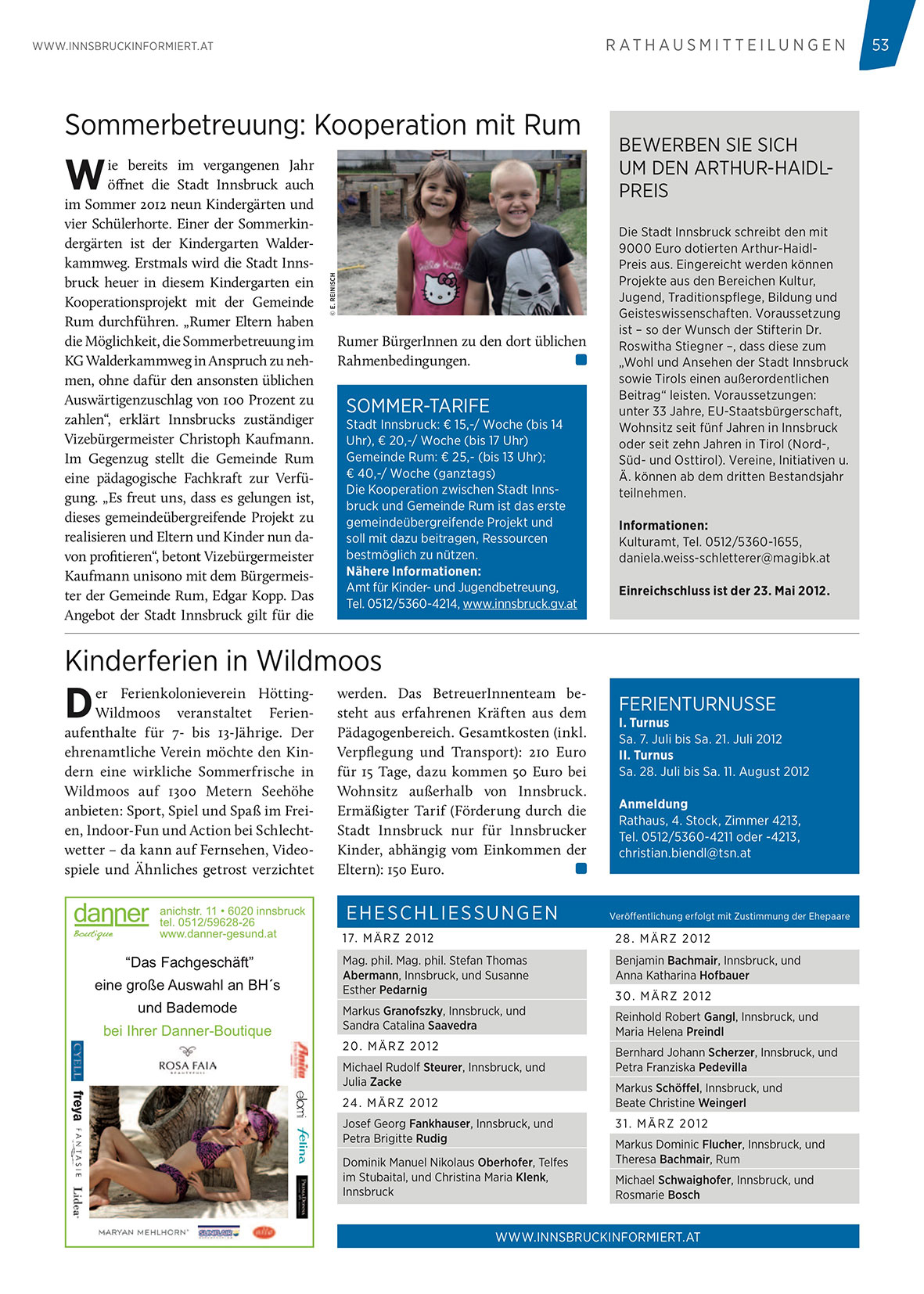 Tel. 0512/5360-4214, www.innsbruck.gv.at