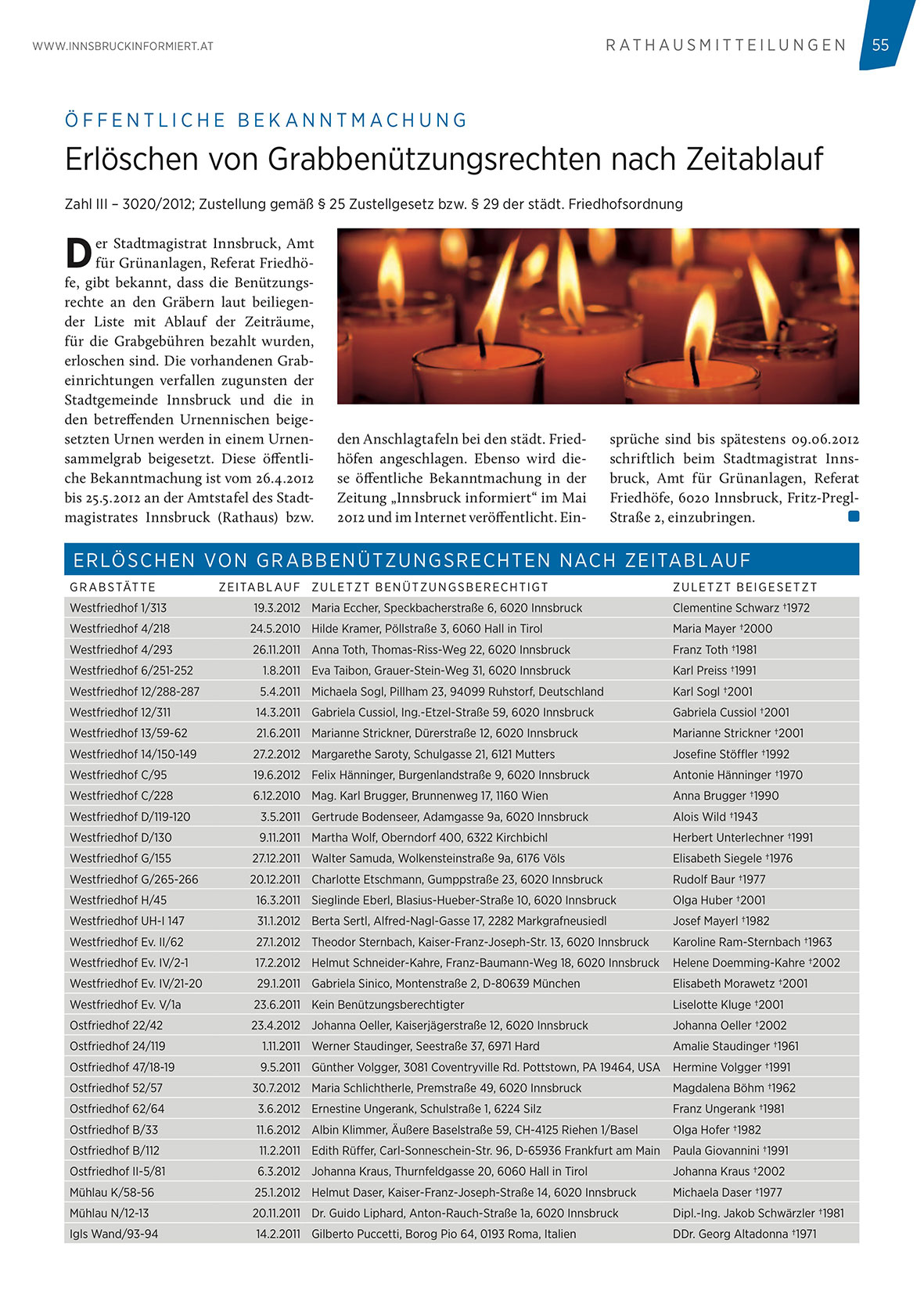 bis 25.5.2012 an der Amtstafel des Stadtmagistrates Innsbruck (Rathaus) bzw.