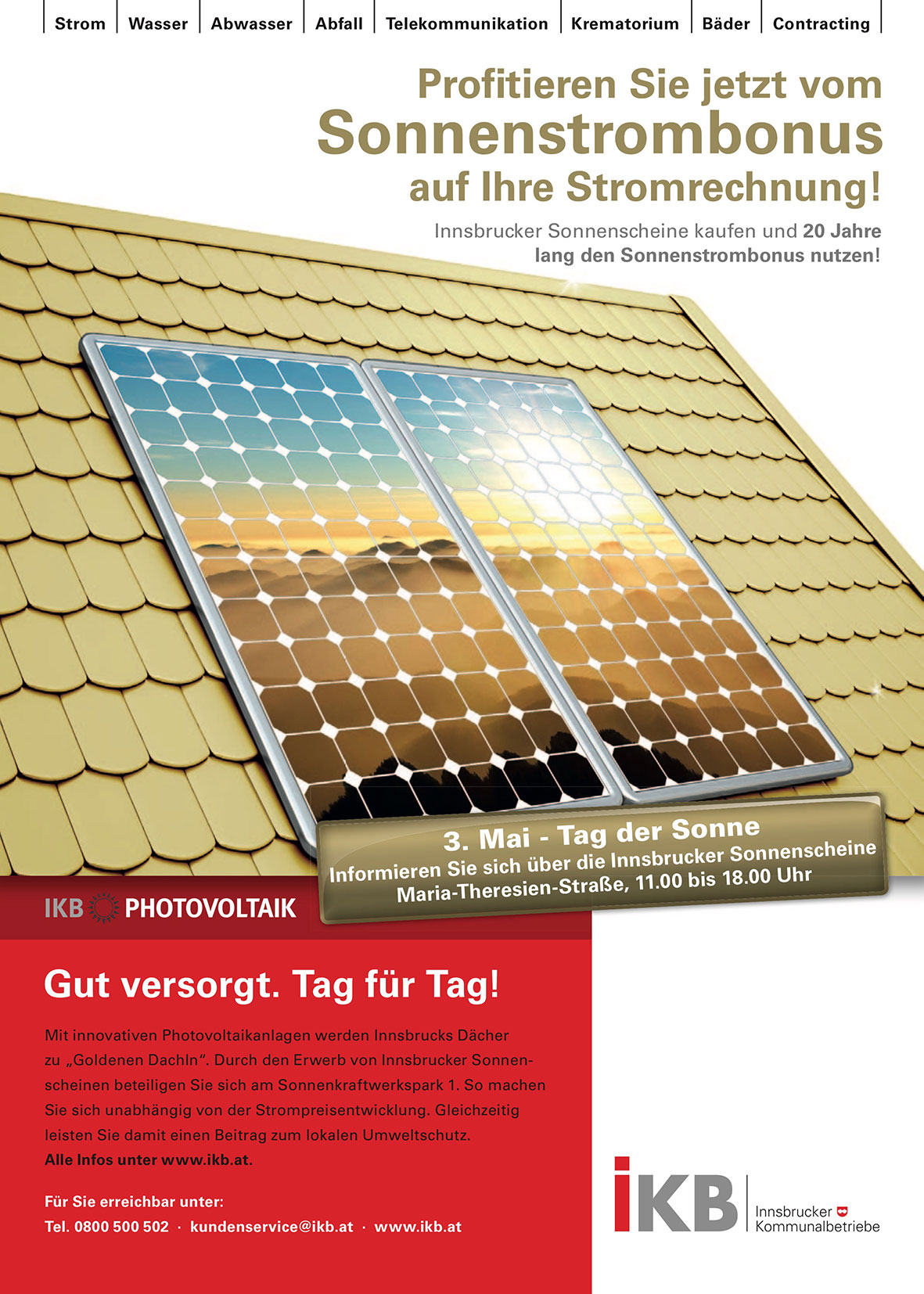 zu „Goldenen Dachln“. Durch den Erwerb von Innsbrucker Sonnenscheinen beteiligen Sie sich am Sonnenkraftwerkspark 1. So machen