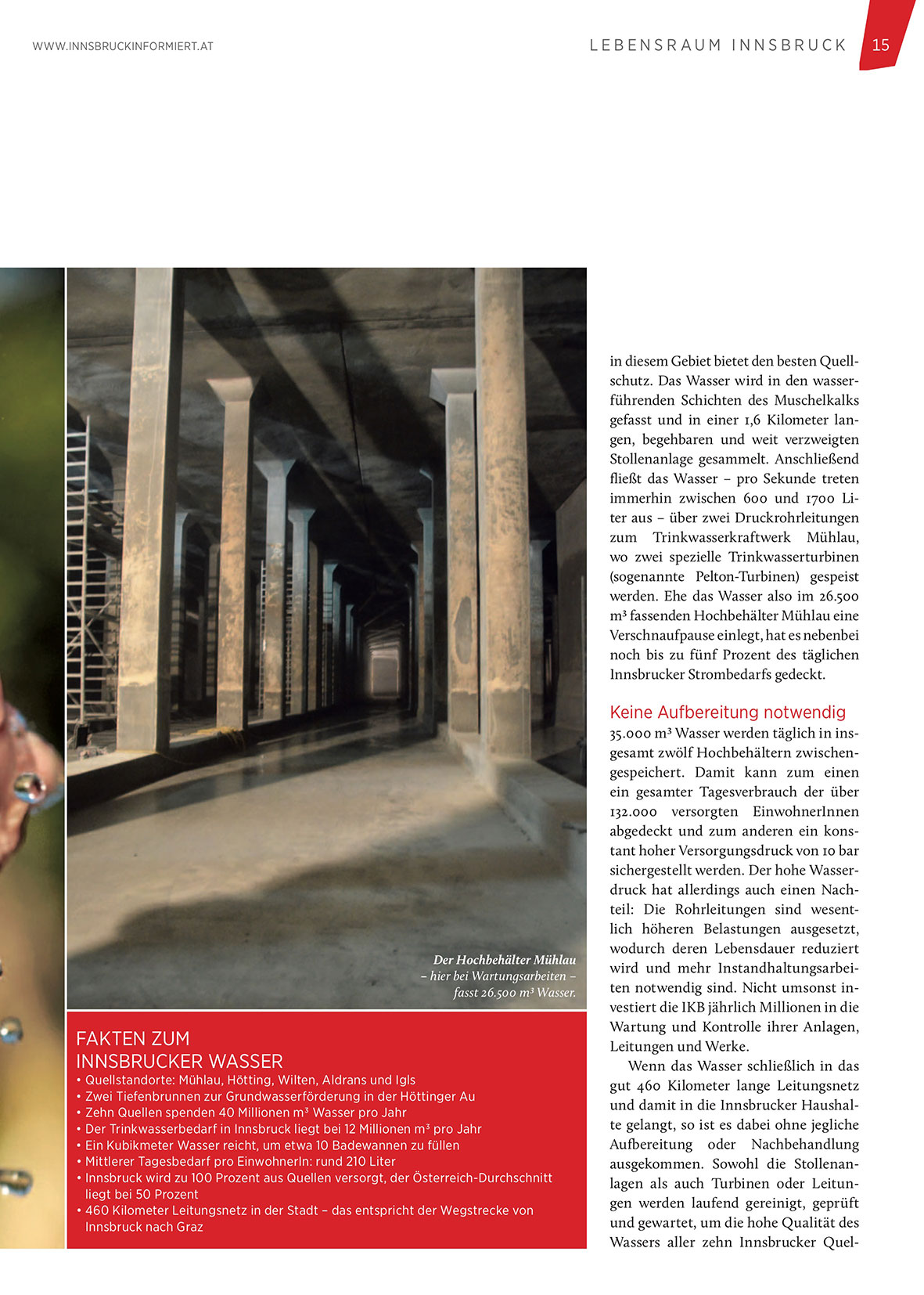 • Der Trinkwasserbedarf in Innsbruck liegt bei 12 Millionen m3 pro Jahr