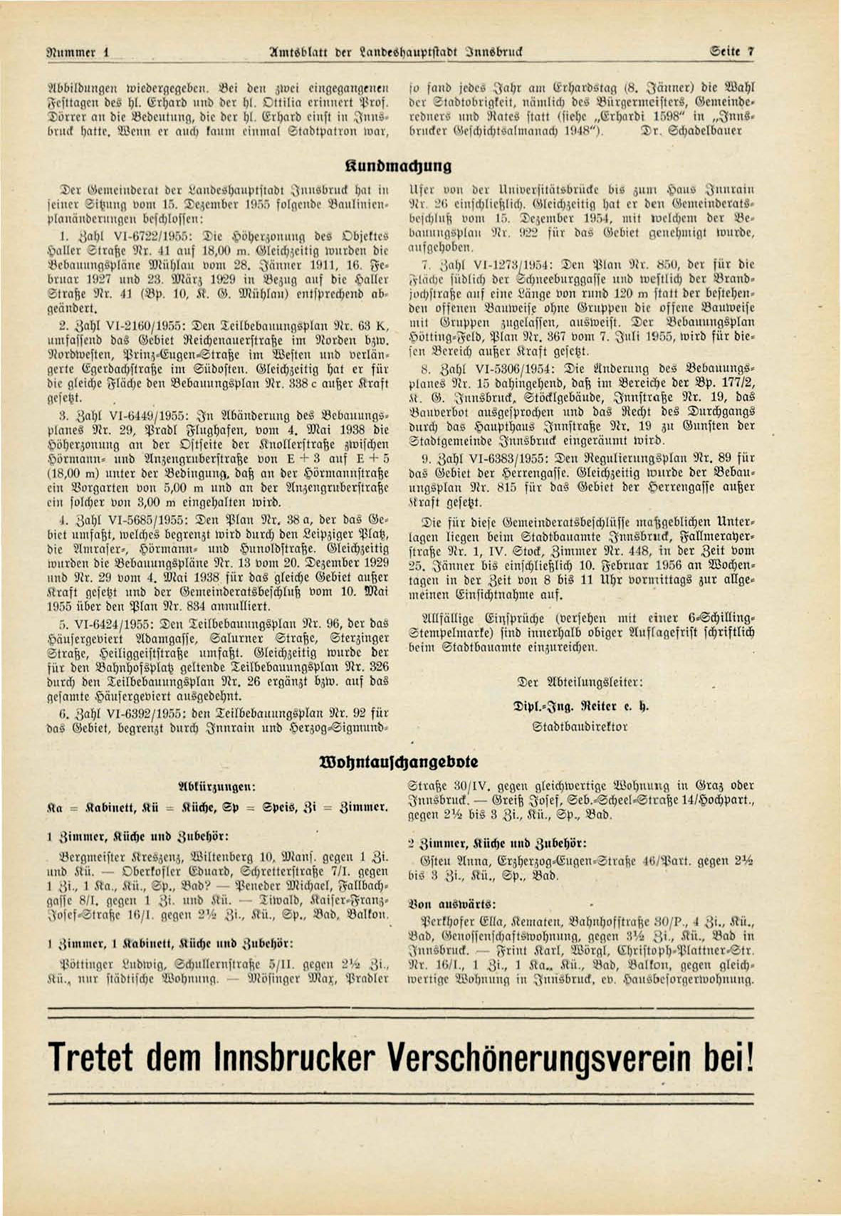 3. Zahl VI-6449/1955: I u Abänderung des Bebauungsplanes Nr. 29, Pradl Flughafen, vom 4. M a i 1938 die