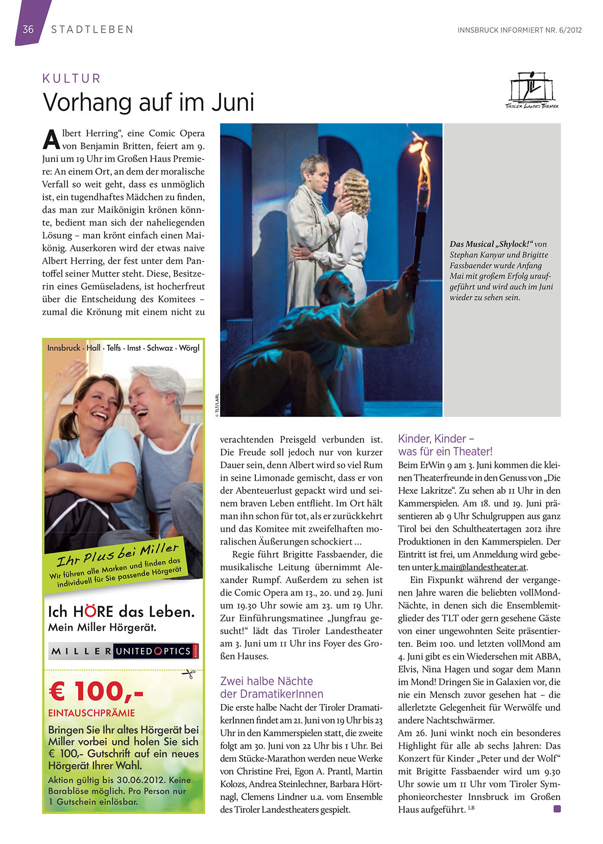 Zur Einführungsmatinee „Jungfrau gesucht!“ lädt das Tiroler Landestheater
