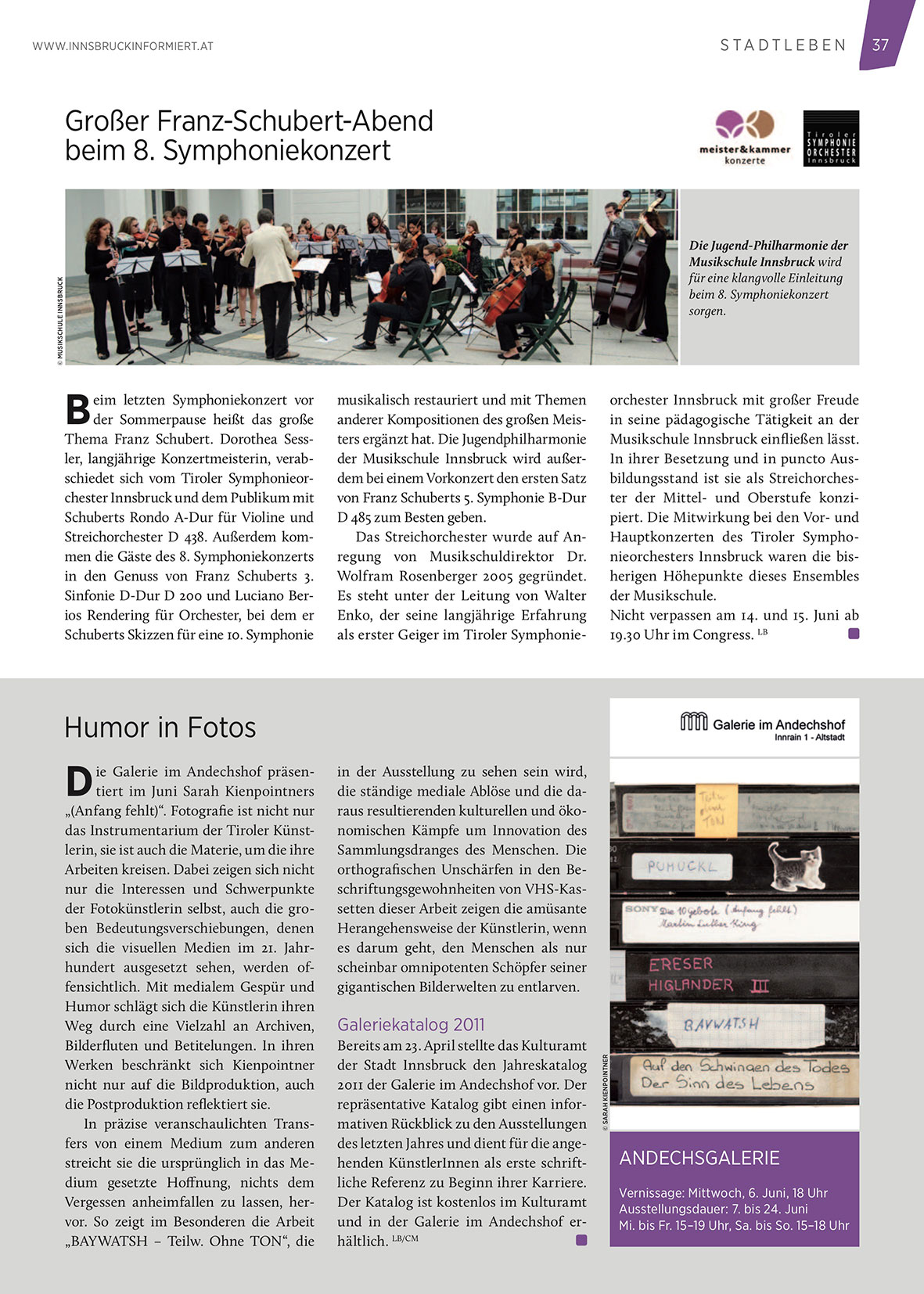 des letzten Jahres und dient für die angehenden KünstlerInnen als erste schriftliche Referenz zu Beginn ihrer Karriere.