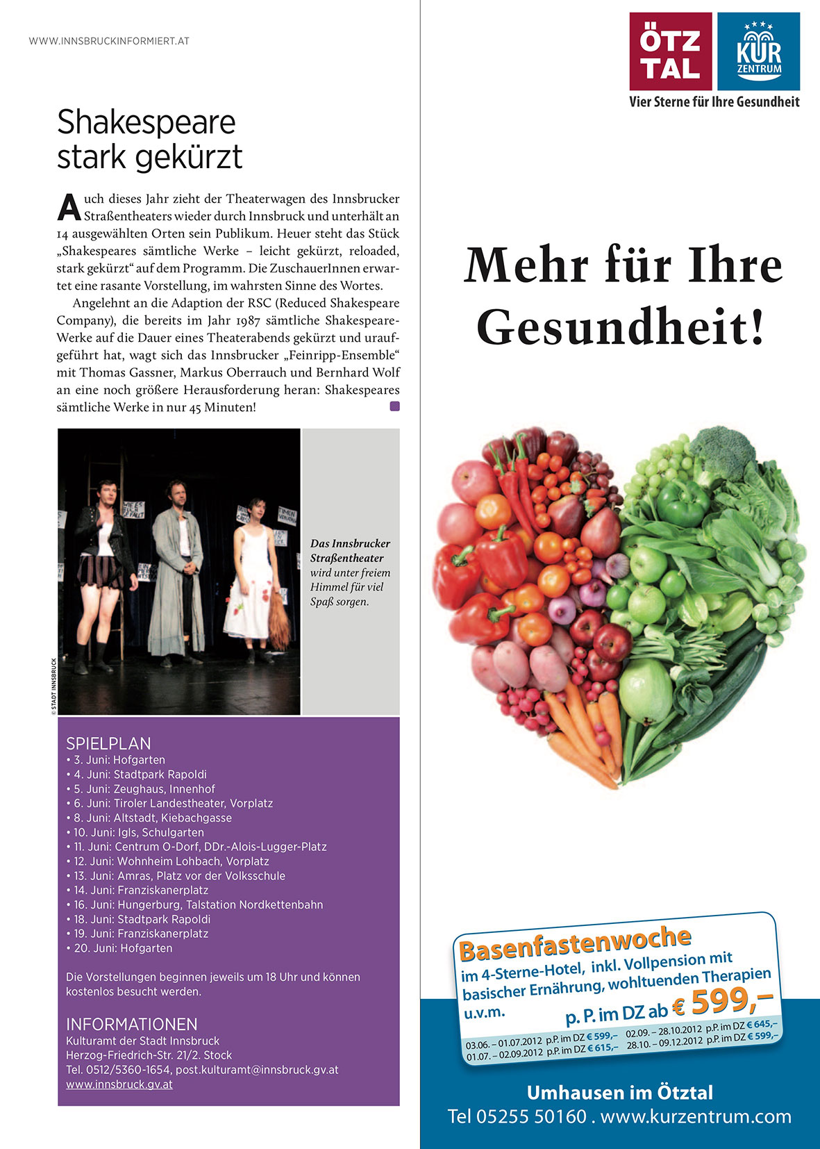 Company), die bereits im Jahr 1987 sämtliche ShakespeareWerke auf die Dauer eines Theaterabends gekürzt und uraufgeführt hat, wagt sich das Innsbrucker „Feinripp-Ensemble“