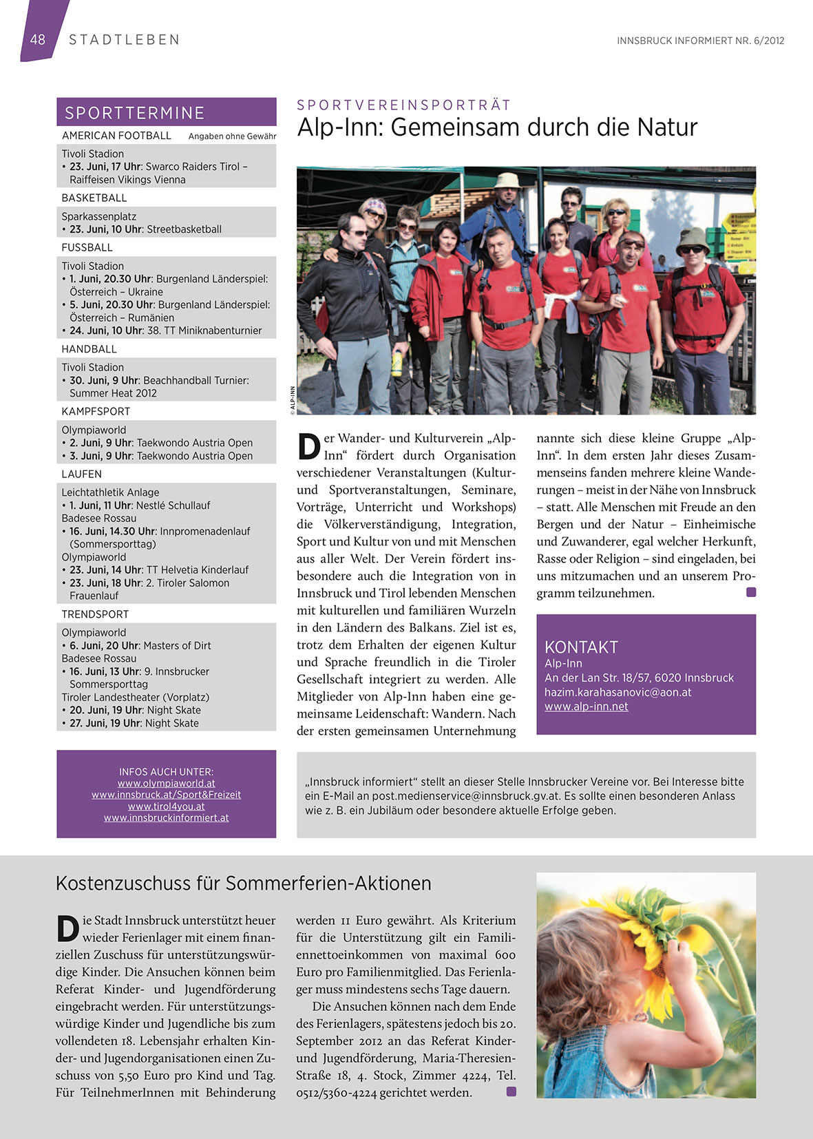 „Innsbruck informiert“ stellt an dieser Stelle Innsbrucker Vereine vor. Bei Interesse bitte