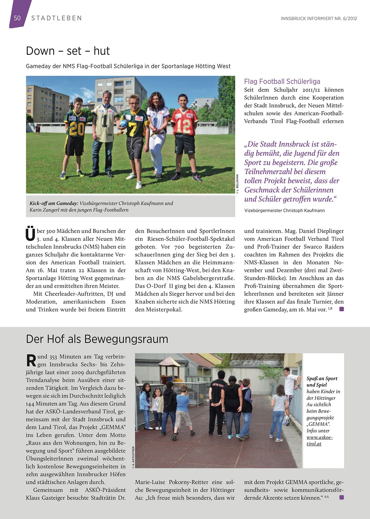 der Stadt Innsbruck, der Neuen Mittelschulen sowie des American-FootballVerbands Tirol Flag-Football erlernen