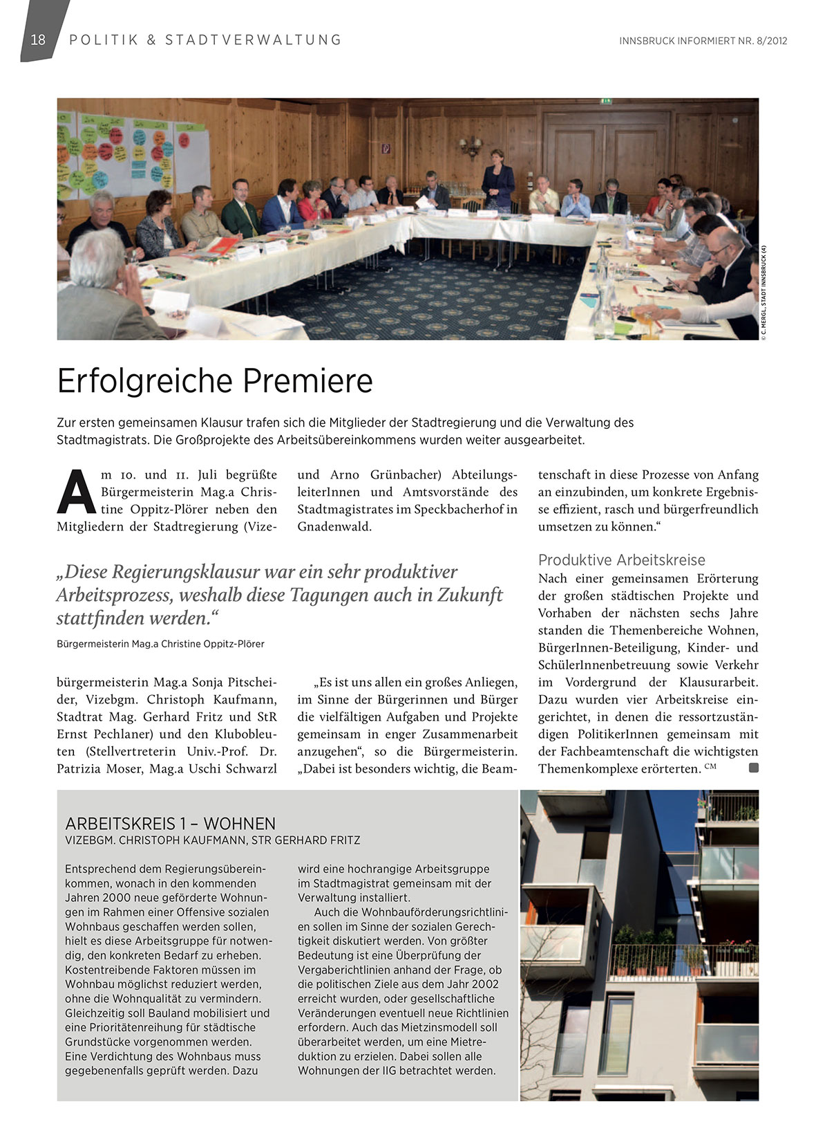 Stadtmagistrats. Die Großprojekte des Arbeitsübereinkommens wurden weiter ausgearbeitet.