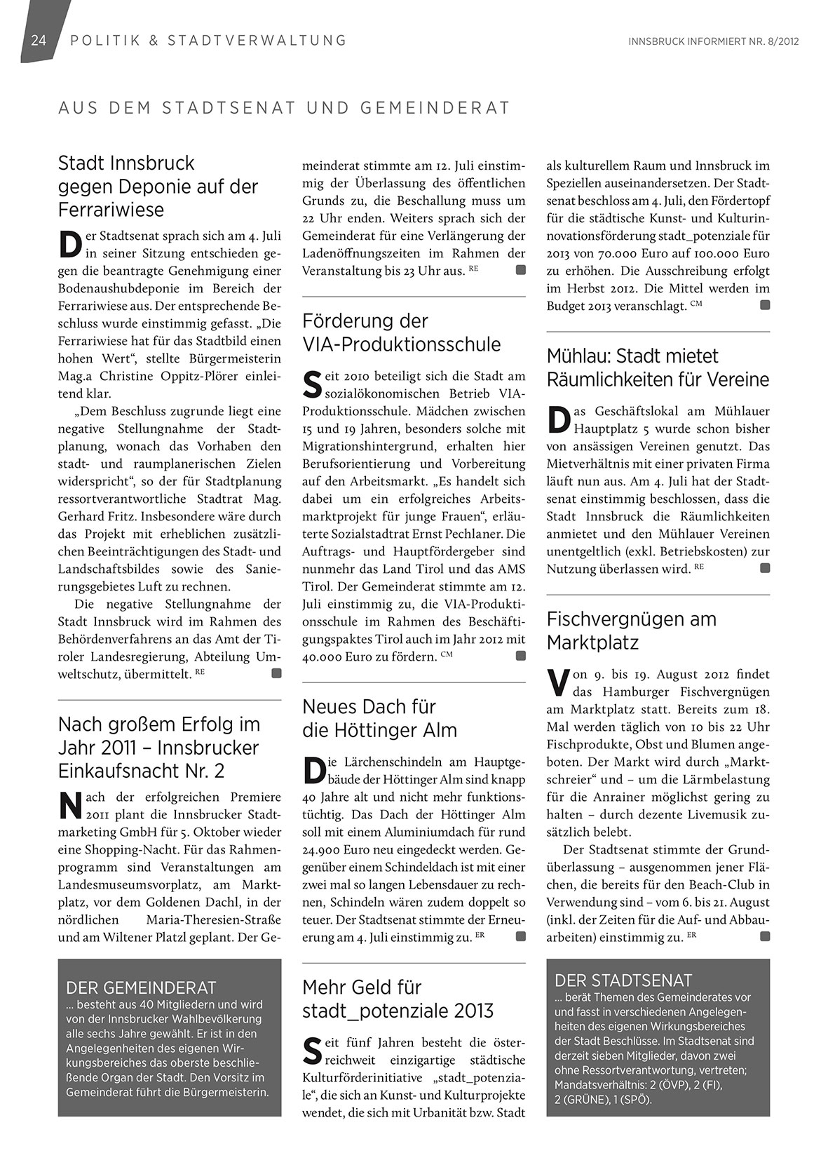 der Stadt Beschlüsse. Im Stadtsenat sind