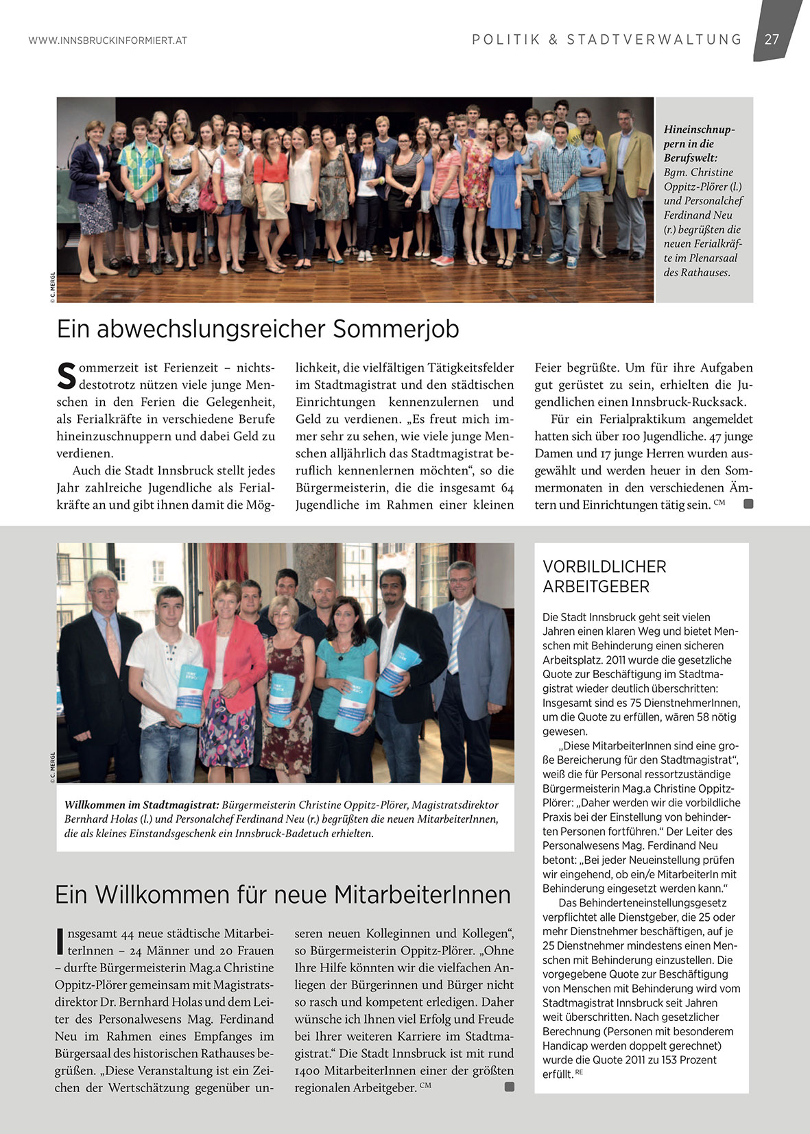 bei Ihrer weiteren Karriere im Stadtmagistrat.“ Die Stadt Innsbruck ist mit rund