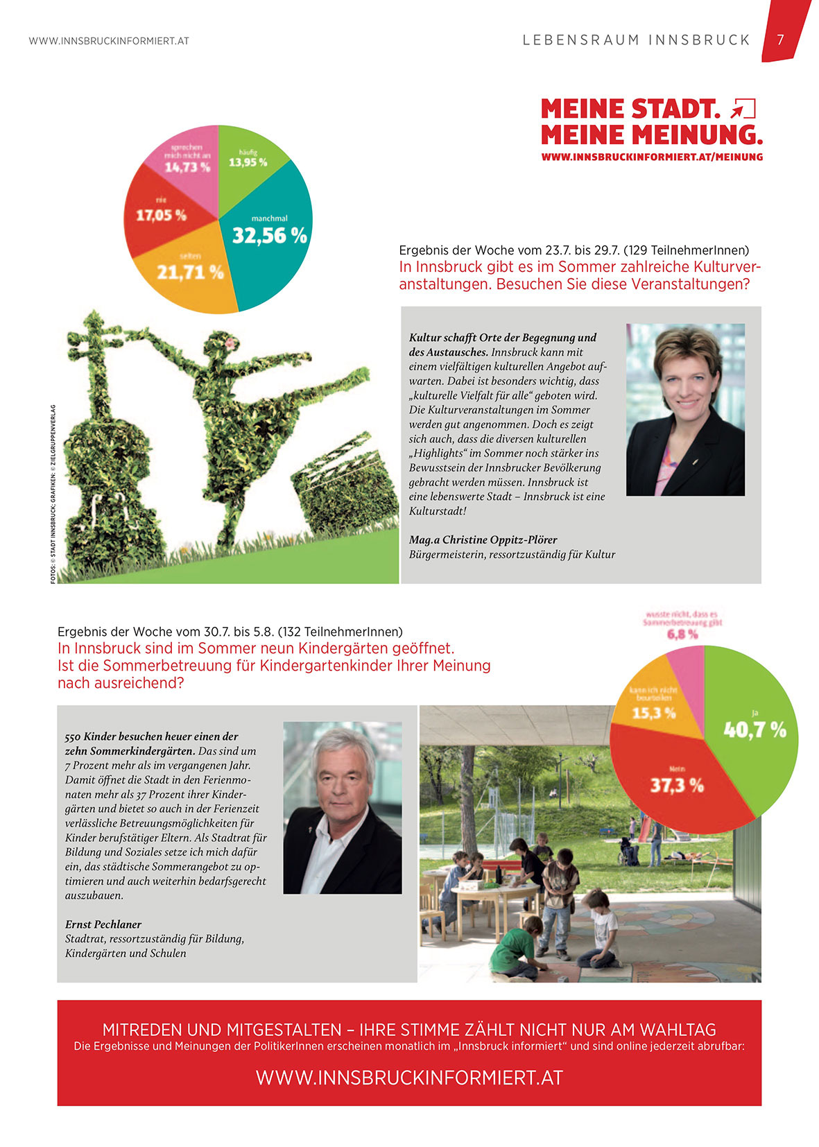 Die Ergebnisse und Meinungen der PolitikerInnen erscheinen monatlich im „Innsbruck informiert“ und sind online jederzeit abrufbar: