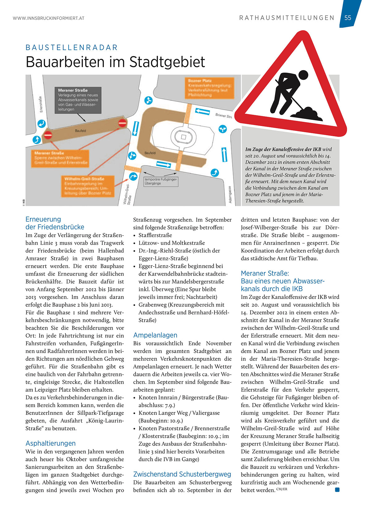 in der Maria-Theresien-Straße hergestellt. Während der Bauarbeiten des ersten Abschnittes wird die Meraner Straße